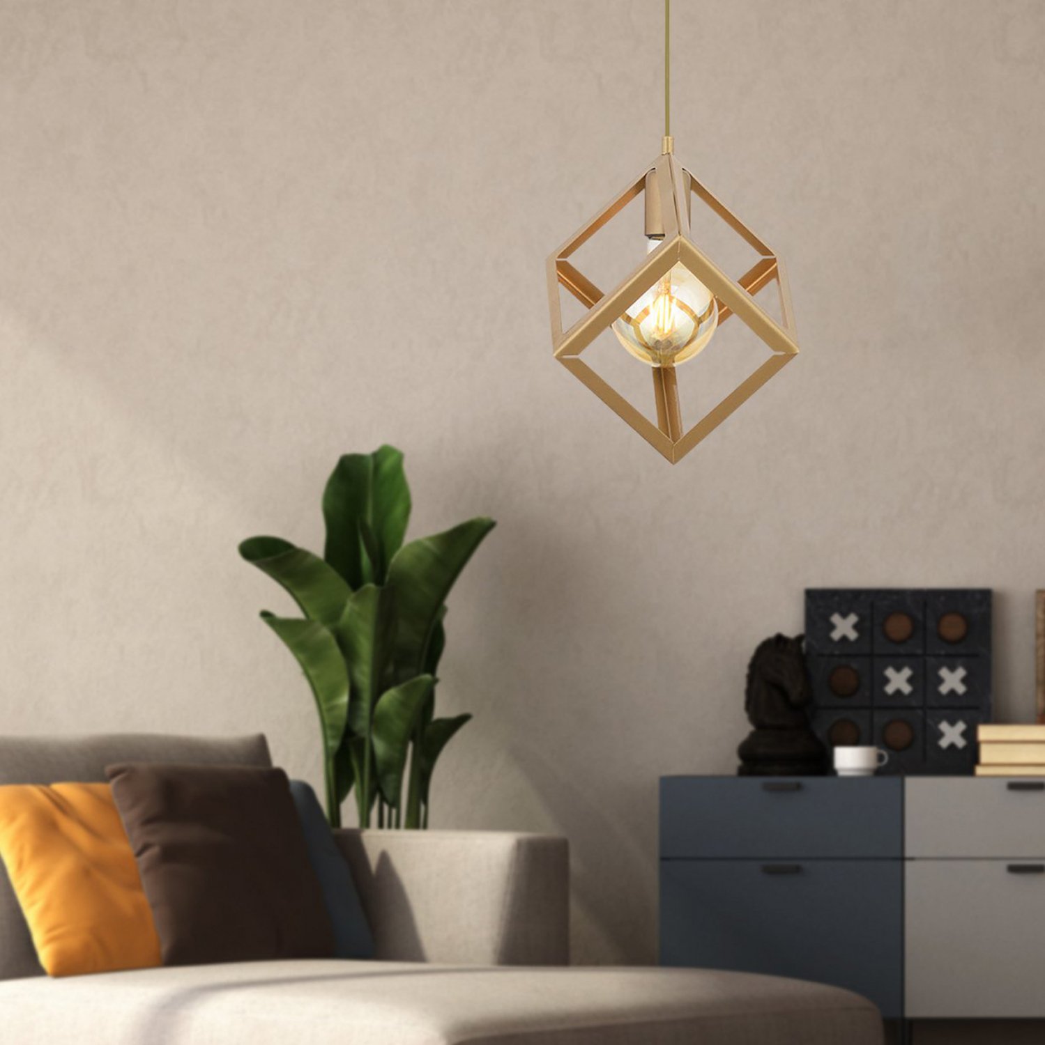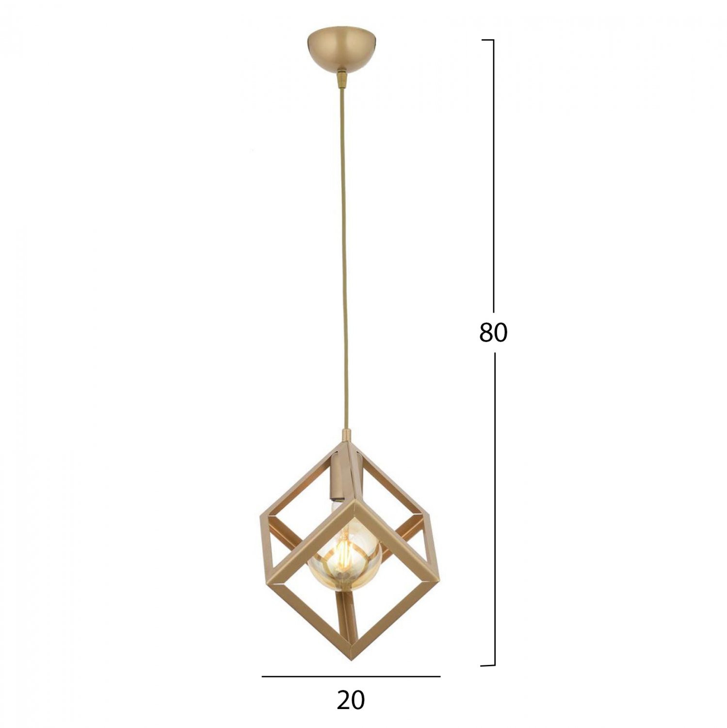 Φωτιστικό οροφής, σε χρυσή απόχρωση και σχήμα κύβου.