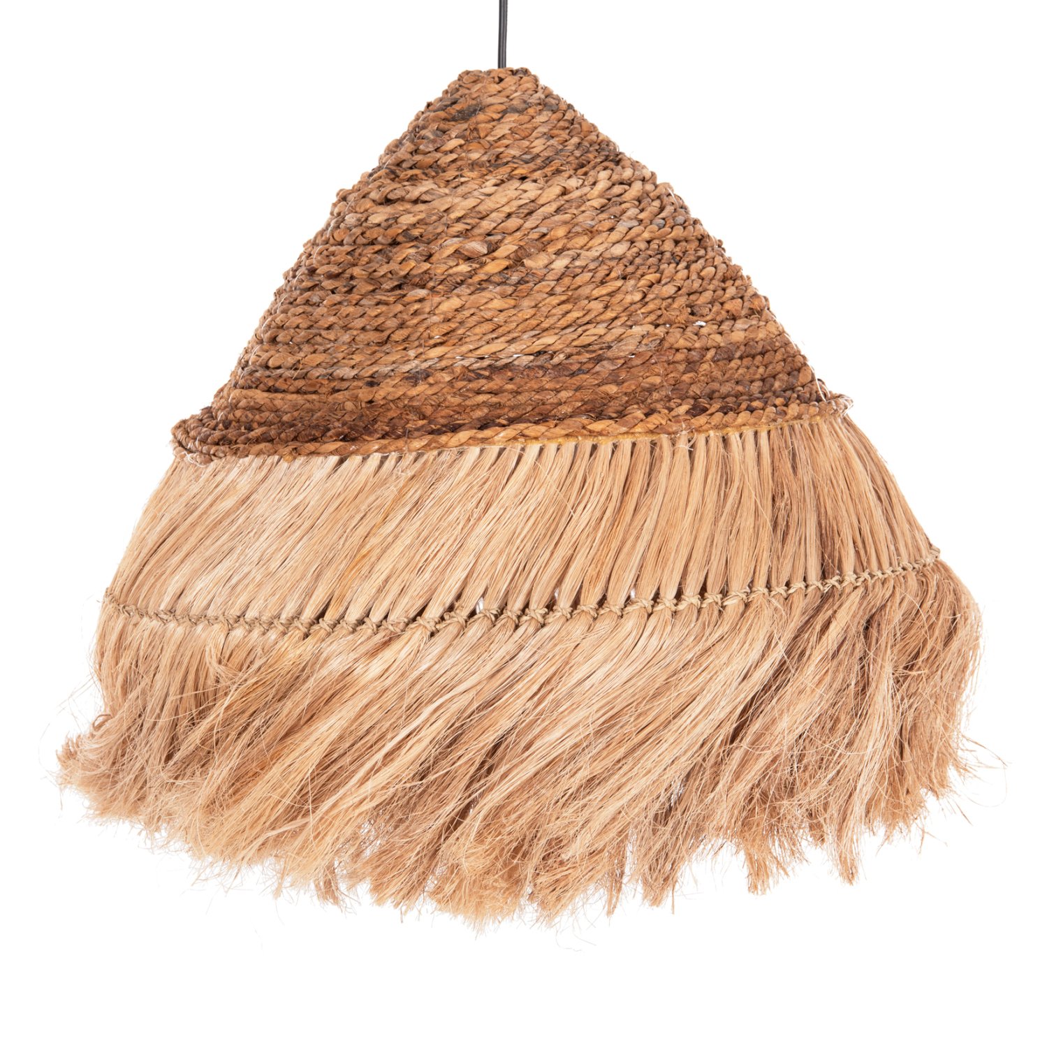 Hm7762- Kρεμαστό φωτιστικό—- Αν επιθυμείτε να διακοσμήσετε το χώρο σας με ένα φωτιστικό σε boho στυλ, αυτό είναι μια χαρακτηριστική επιλογή. Είναι ένα μονόφωτο φωτιστικό με «καπέλο» σε σχήμα στρογγυλής πυραμίδας φτιαγμένο από ίνες κάνναβης Μανίλας σε φυσικό χρώμα. Το ιδιαίτερο χαρακτηριστικό αυτού του φωτιστικού είναι ότι στο επάνω μέρος του καπέλου οι ίνες είναι πλεγμένες σαν σχοινί δίνοντας μια άλλη αισθητική στο φωτιστικό.