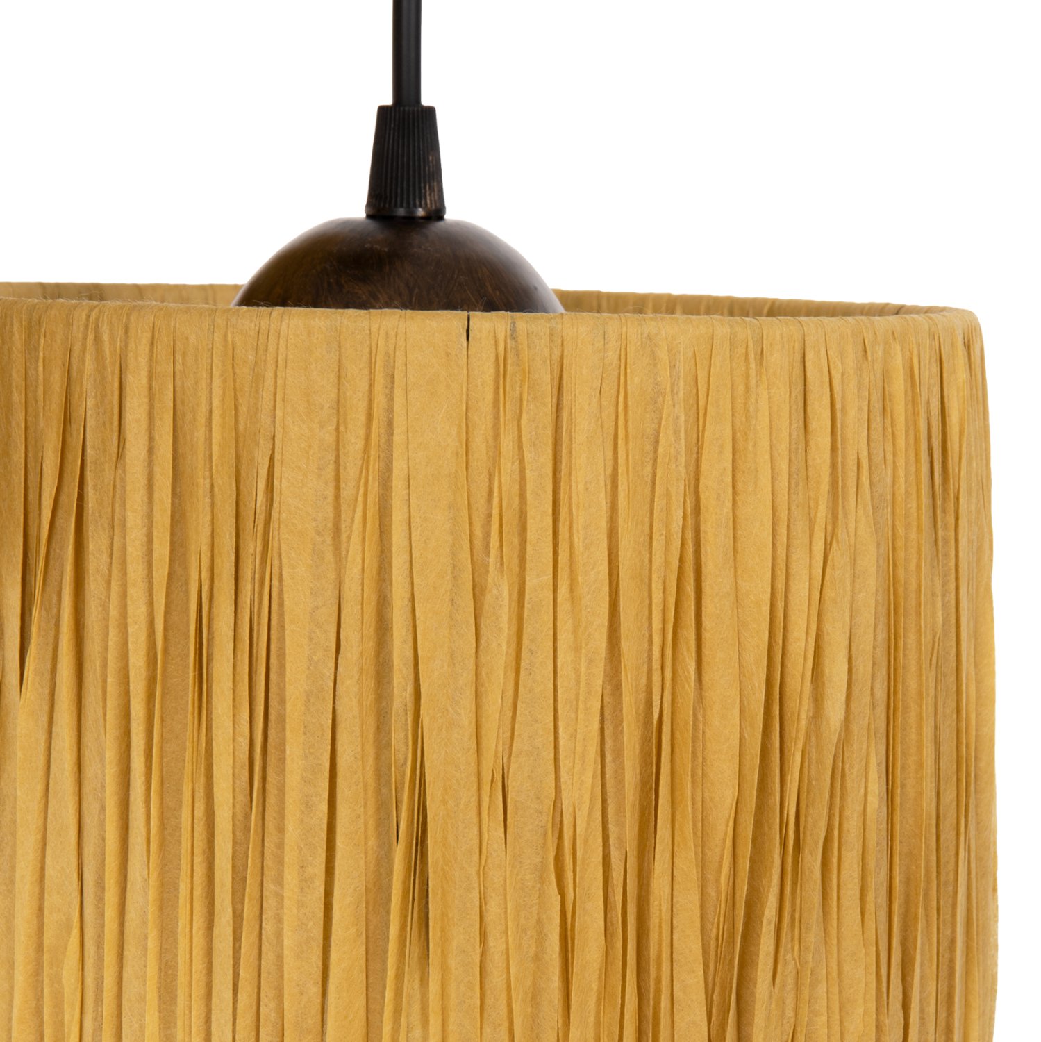 HΜ7948.05–Ανακαλύψτε το πρωτότυπο και φινετσάτο χειροποίητο τρίφωτο κρεμαστό οροφής εσωτερικού χώρου, ολοκληρώνοντας την διακόσμησή σας. Τα ανισοϋψή κυλινδρικά «καπέλα» του φωτιστικού είναι επενδυμένα με επεξεργασμένο στρογγυλό paper rope σε ΜΠΕΖ χρώμα ειδικό για φωτιστικά, και είναι η επιτομή του μοντέρνου design. Η στρογγυλή βάση του φωτιστικού είναι ΜΠΡΟΝΖΕ μεταλλική, δημιουργώντας μια όμορφη διχρωμία.