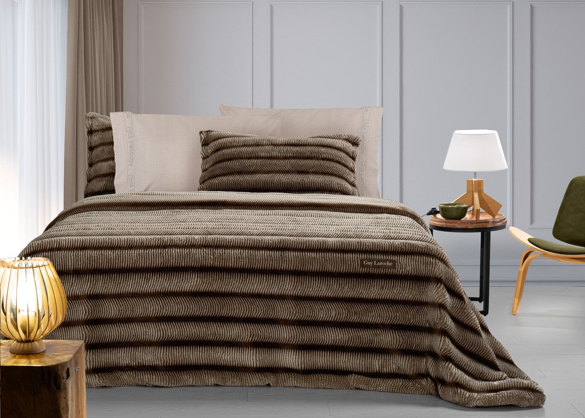 Χαρίστε στο υπνοδωμάτιο σας φινετσάτη εμφάνιση και ζεστασιά με τις γούνινες κουβέρτες της εταιρείας Guy Laroche. Η αξεπέραστα απαλή υφή της δεν θα σας αφήσει να σηκωθείτε από το κρεβάτι σας ενώ η σύνθεση από 100% Polyester ultrasoft θα σας ζεστάνει γλυκά. Με διαχρονικό μοτιβό για να ταιριάξουν σε κάθε στυλ, θα αναδείξουν την πολυτέλεια του υπνοδωματίου σας!