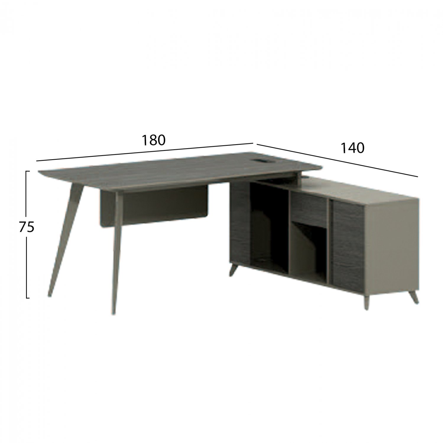Επαγγελματικό γραφείο από την σειρά Lux Series με αναστρέψιμη γωνία, κατασκευασμένο από μελαμίνη υψηλής ποιότητας, σε μόκα και σταχτί ανάγλυφη απόχρωση.