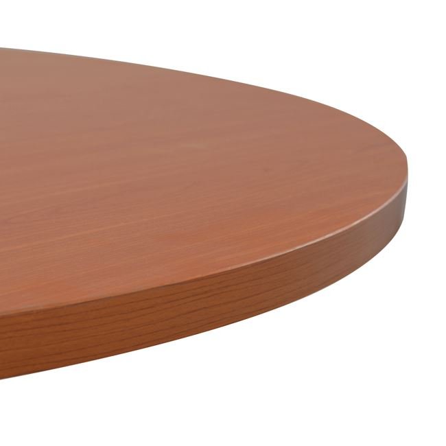 Επαγγελματικό γραφείο συνεδριάσεων με στρόγγυλη επιφάνεια, κατασκευασμένο από ανθεκτική μελαμίνη σε κερασί απόχρωση και μεταλλική βάση σε γκρι απόχρωση.