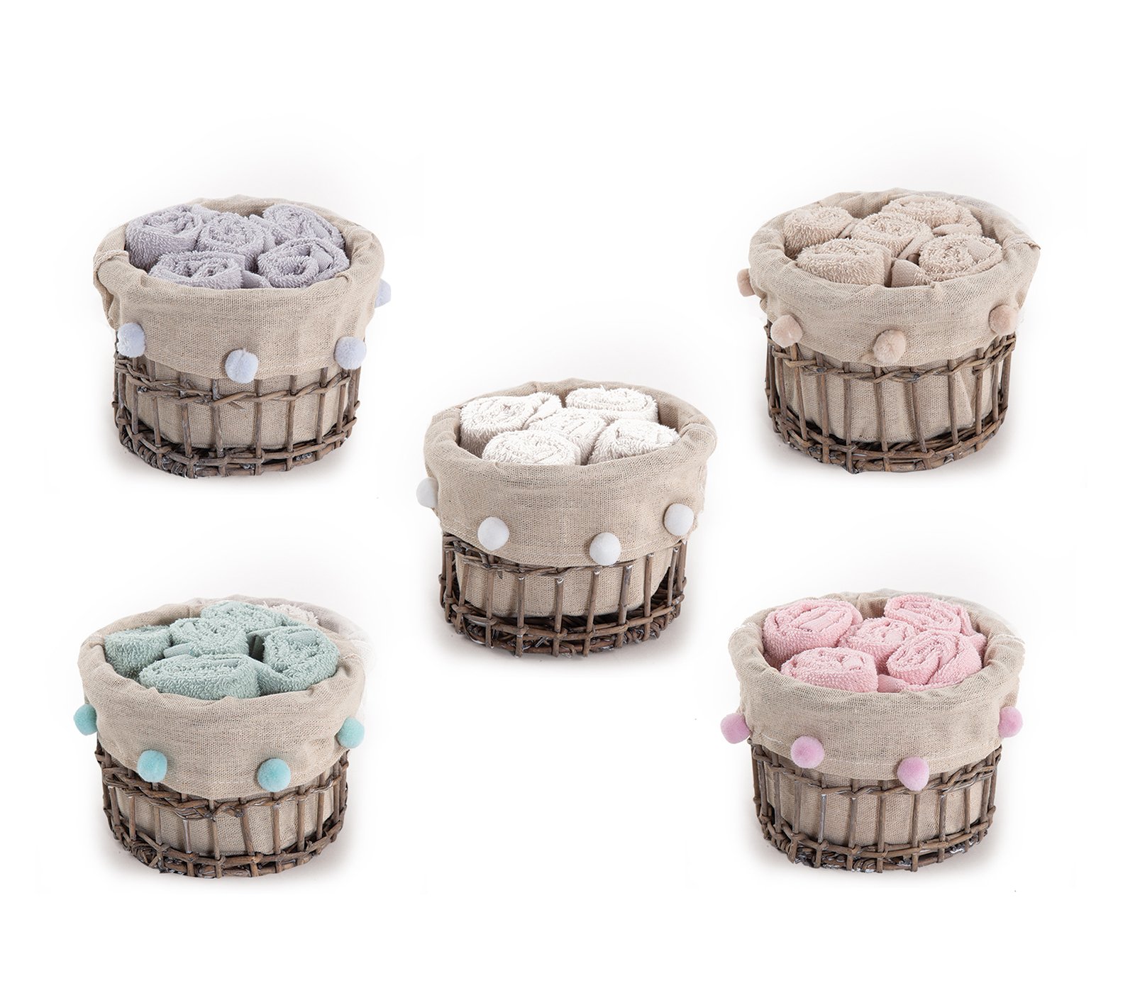 Καλάθι με Λαβέτες χεριών, από 100% βαμβάκι, βάρους 450gr/m2.
