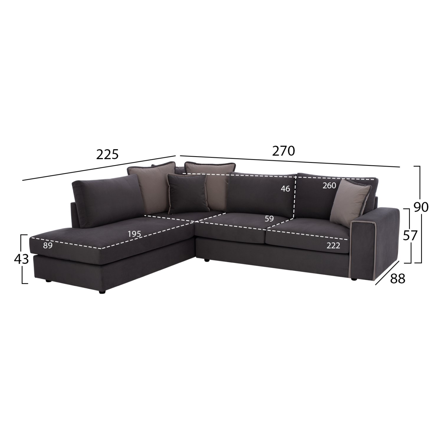 ΚΑΝΑΠΕΣ ΑΡΙΣΤΕΡΗ ΓΩΝΙΑ HOME ΥΦΑΣΜΑ ΑΛΕΚΙΑΣΤΟ ΓΚΡΙ 270x225x90Υεκ. HM3255.01L