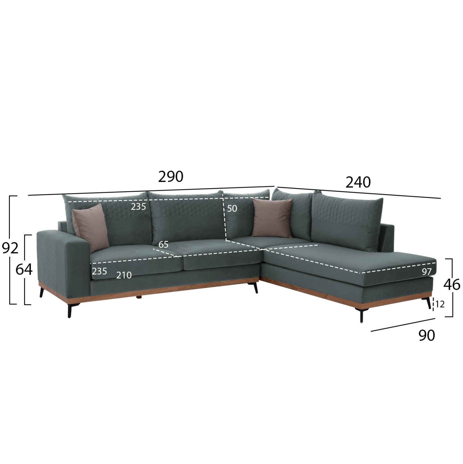 Γενικές Διαστάσεις: 290x240x94Y εκ. (μαζί με τα μαξιλάρια πλάτης)