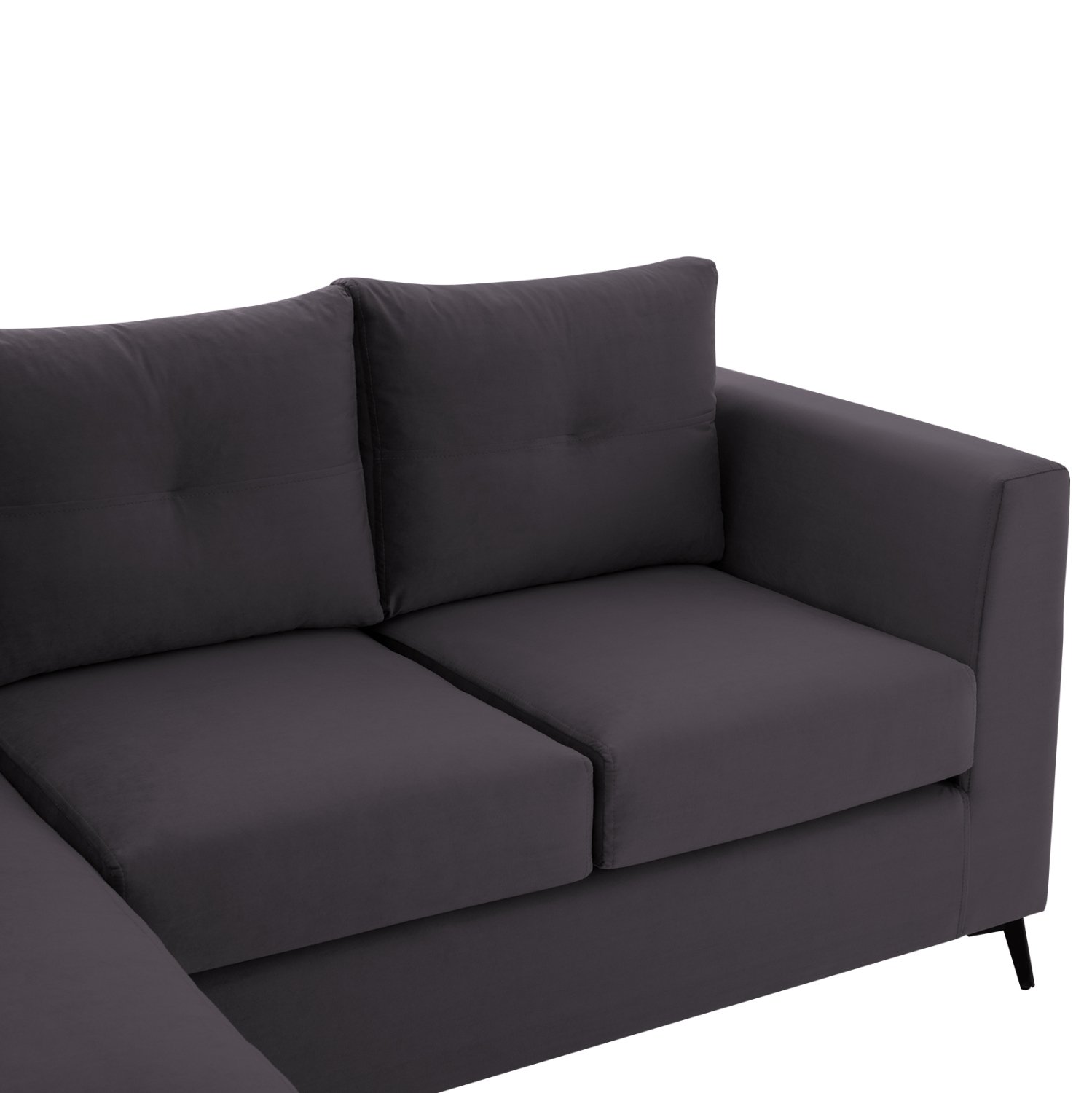 Το βασικό χαρακτηριστικό του καναπέ, όμως, είναι ότι δημιουργεί την γωνία που σας βολεύει, είτε δεξιά είτε αριστερή. Το κομμάτι που δημιουργεί την γωνία, είναι ανεξάρτητο και συνδέεται με τον υπόλοιπο καναπέ αρμονικά με ύφασμα με «χρατς», ενώ, το μαξιλάρι καθίσματος που είναι μακρύτερο και αποτελεί ένα από τα τρία μαξιλάρια καθίσματος του καναπέ, δεν θα δυσκολέψει τον χρήστη φεύγοντας από την θέση του, επειδή και αυτό διαθέτει «χρατς» και κολλάει στην ειδική επιφάνεια του σκελετού. Τα πόδια του καναπέ είναι ψηλά, πράγμα που βοηθάει στο καθάρισμα των δαπέδων χωρίς να χρειαστεί να μετακινηθεί ολόκληρος ο καναπές. Χωράει μέχρι και σκούπα…ρομποτάκι από κάτω! Σας καλύψαμε;