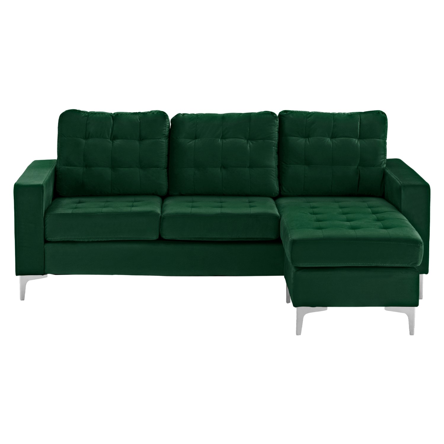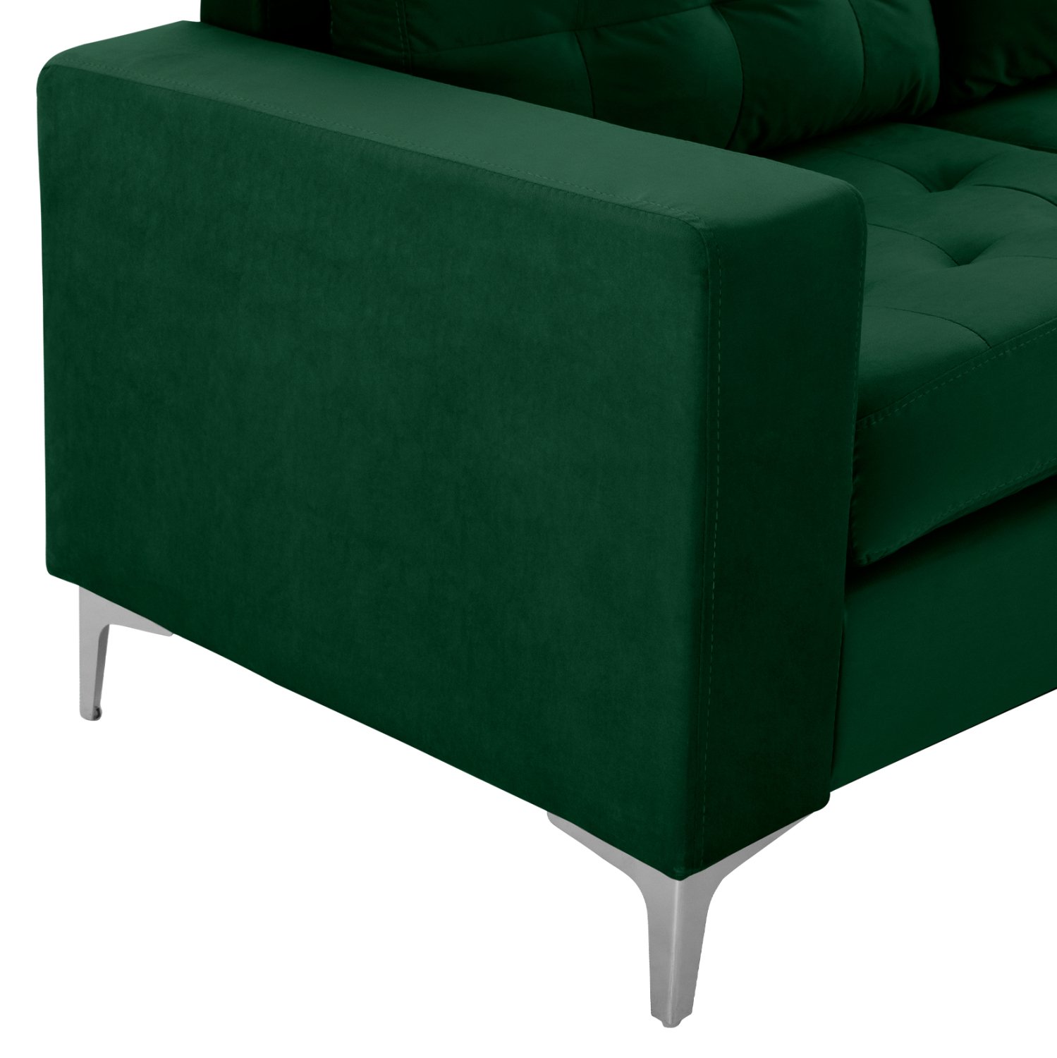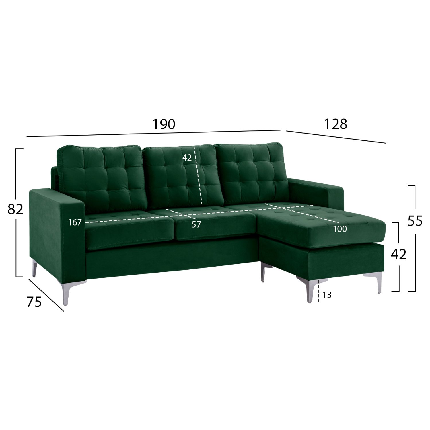 Καναπές γωνία, επενδεδυμένος με βελούδινο ύφασμα σε κυπαρισσί απόχρωση 190×75-128×82Υ εκ.