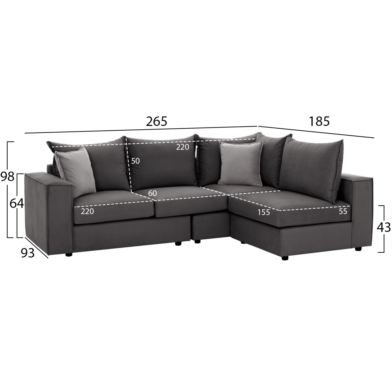 ΚΑΝΑΠΕΣ ΓΩΝΙΑ ΠΟΛΥΜΟΡΦΙΚΟΣ MONZA ΥΦΑΣΜΑ ΑΛΕΚΙΑΣΤΟ ΓΚΡΙ 265x195x98Yεκ. HM3256.01