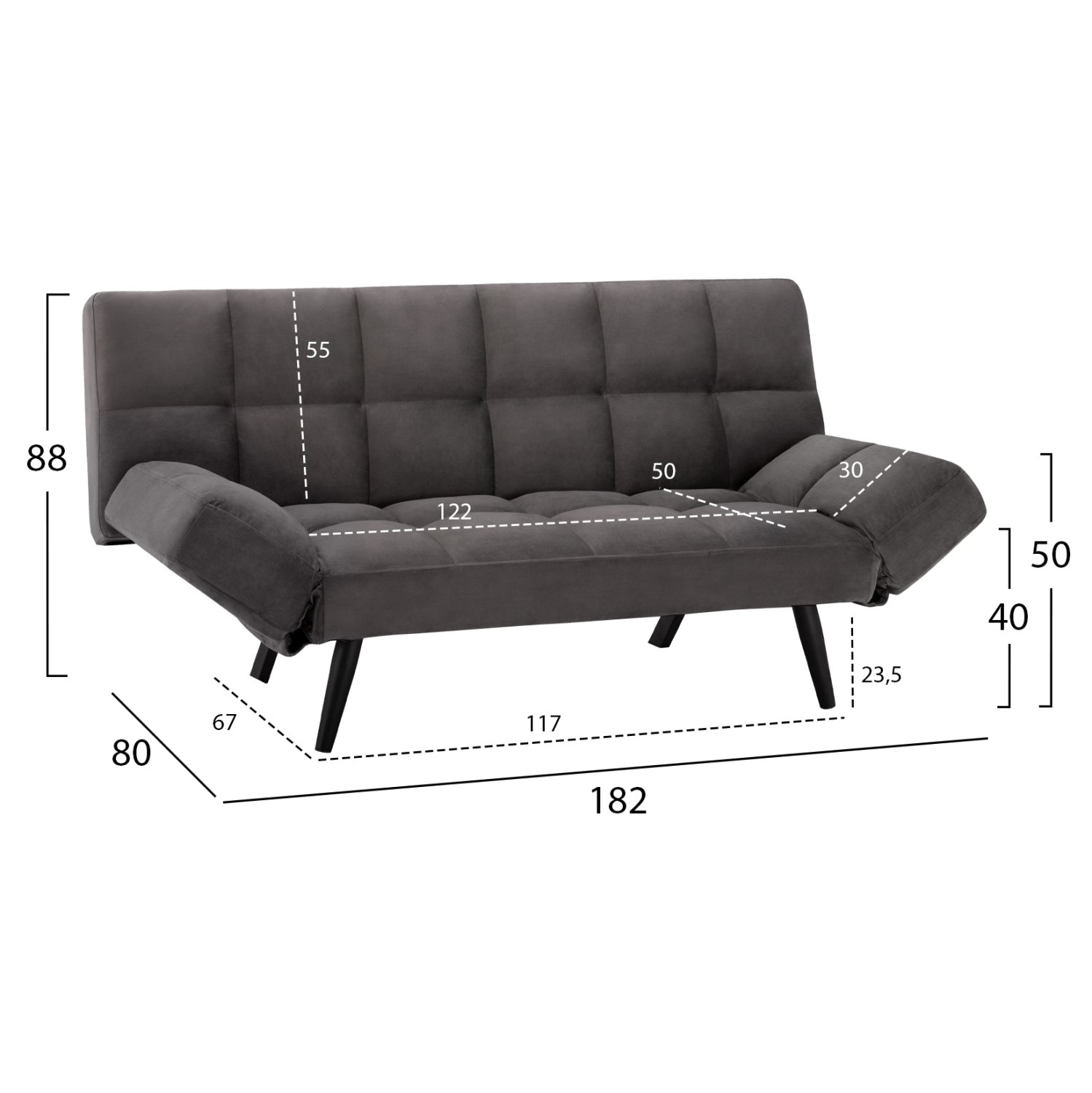 Πτυσσόμενος καναπές-κρεβάτι κατάλληλος για το καθιστικό ή το δωμάτιό σας,η πλάτη του, έχει την δυνατότητα να πέφτει πίσω και να μετατρέπεται εύκολα σε ένα άνετο κρεβάτι ή να παραμένει σε ανάκλιση, ενώ τα μπράτσα του είναι αναδιπλούμενα.