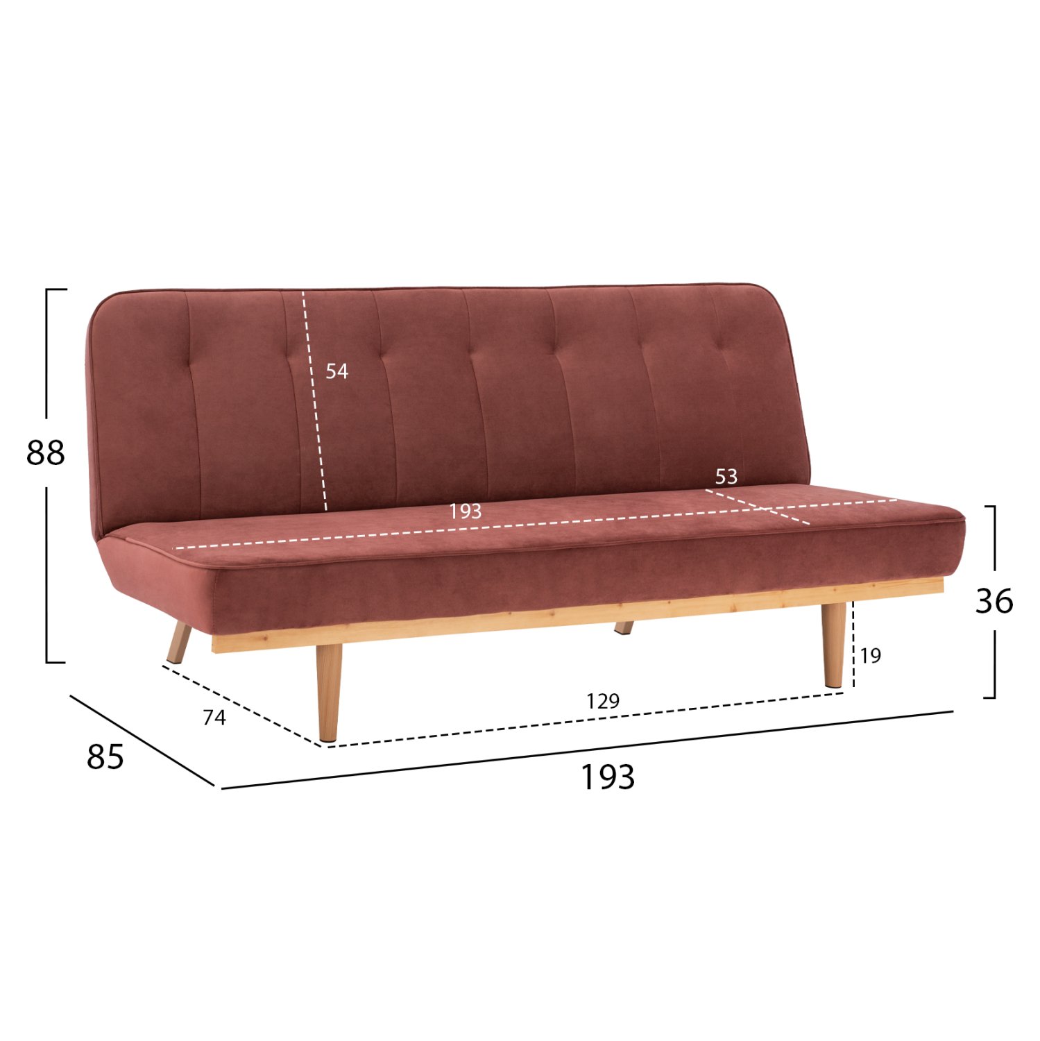 Καναπές τριθέσιος, επενδεδυμένος με βελούδινο ύφασμα σε σάπιο μήλο απόχρωση 193Χ85Χ88Υ εκ.