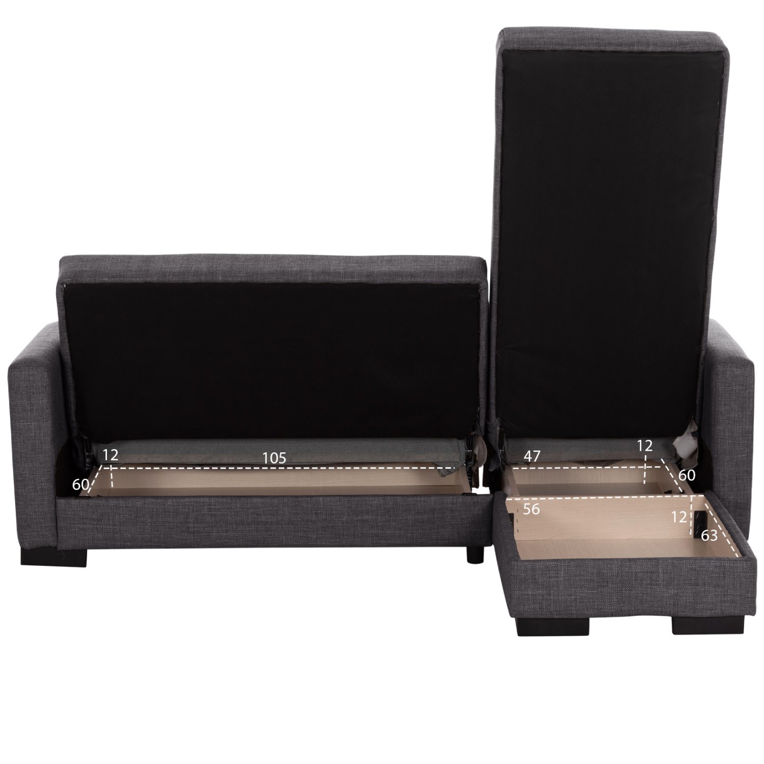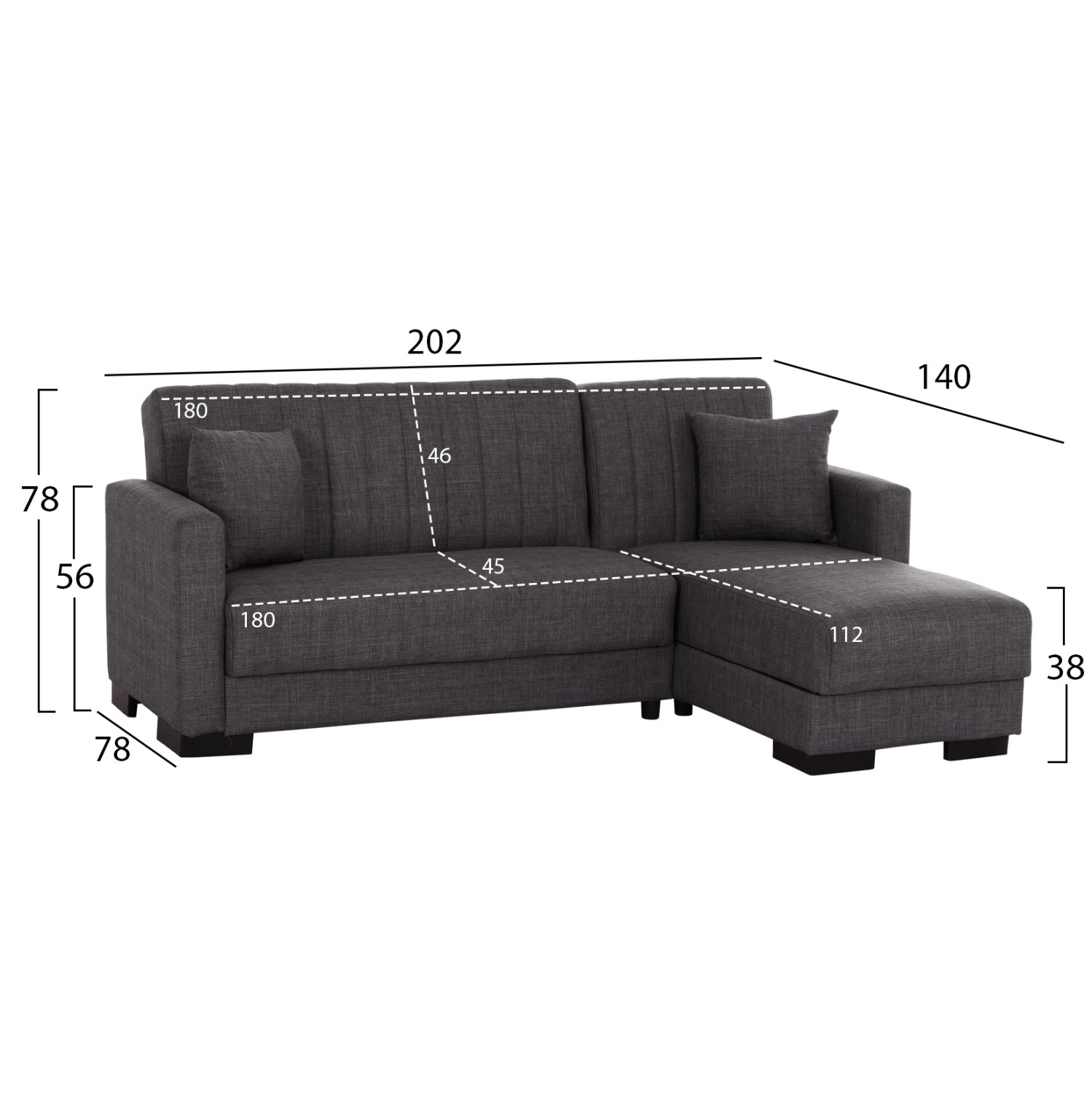 ΚΑΝΑΠΕΣ ΚΡΕΒΑΤΙ GHUFRAN ΓΩΝΙΑ ΑΝΑΣΤΡΕΨΙΜΗ ΓΚΡΙ ΜΕ ΑΠΟΘΗΚΕΤΙΚΟ ΧΩΡΟ HM3244.03 202x140x78Yεκ.