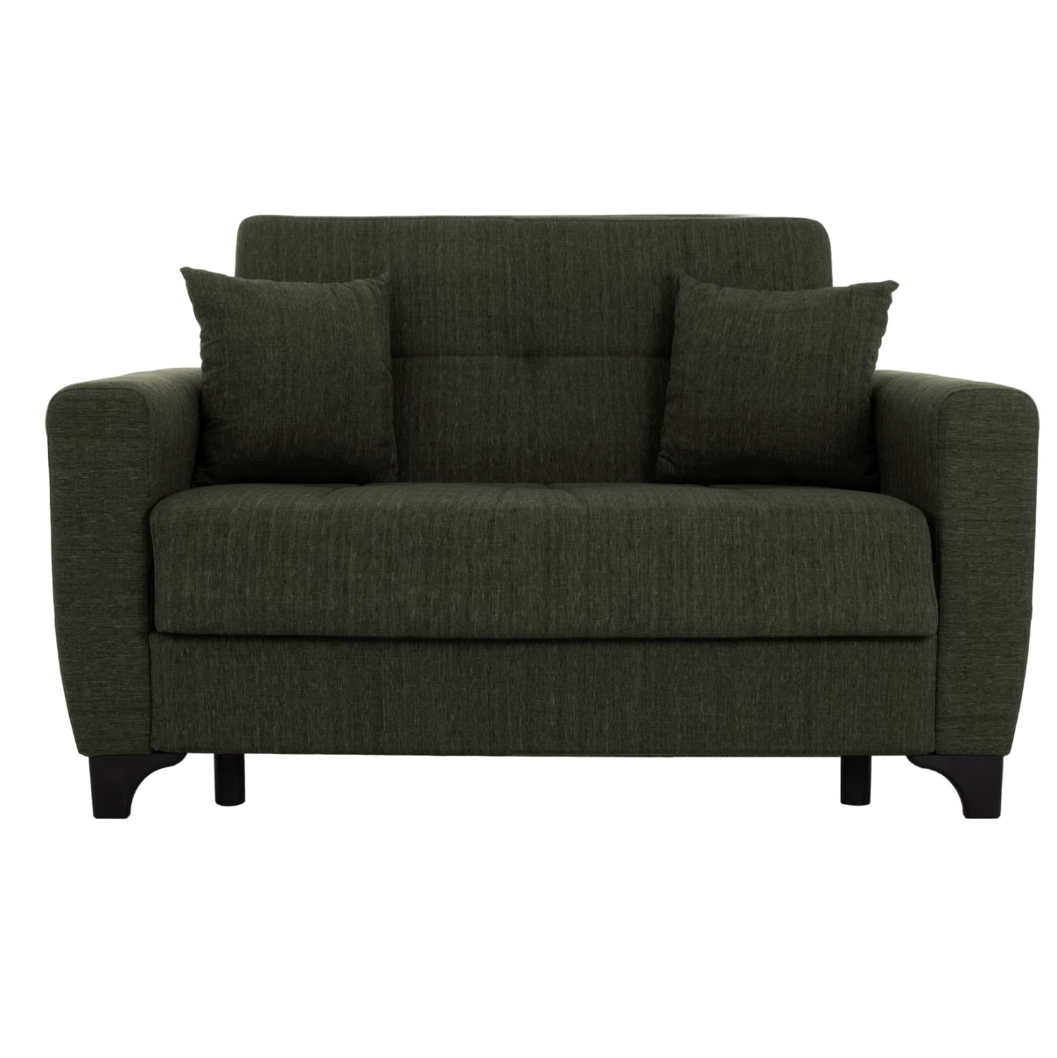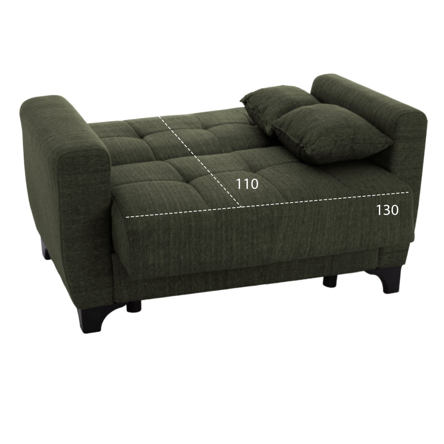 Ο ΗΜ3243.05 είναι ένας καναπές όμορφος και πολυτάλαντος. Η επένδυσή του είναι με εξαιρετικής ποιότητας σκούρο λαδί ύφασμα όπως και τα 2 διακοσμητικά μαξιλαράκια, ενώ τα μπράτσα είναι φαρδιά τόσο-όσο για να προσφέρουν άνεση και στήριξη. Η επένδυση έχει τεχνοτροπία καπιτονέ σε μεγάλα τετράγωνα τόσο στο άνετο κάθισμα όσο και στην χαρακτηριστικά ψηλή πλάτη.