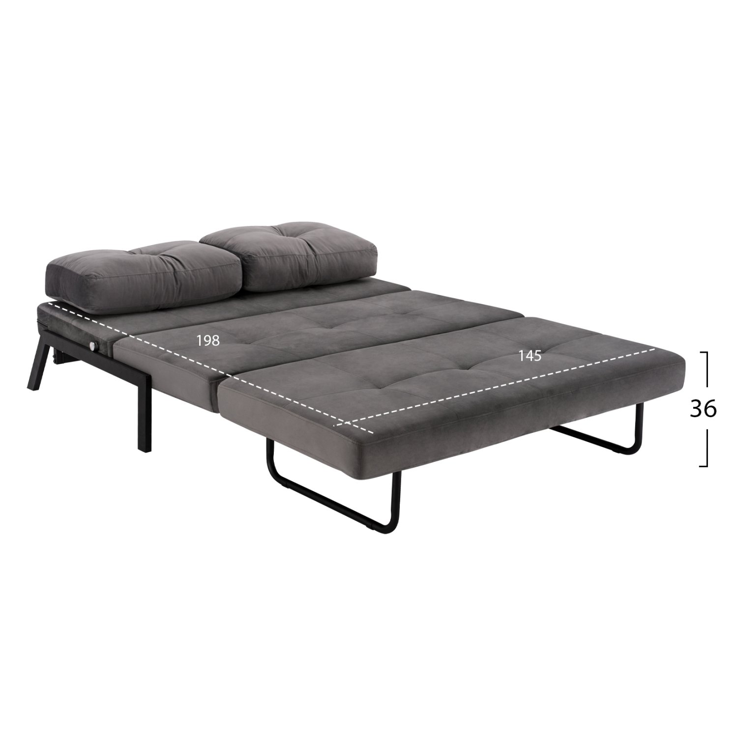 Διαθέτει αναδιπλούμενο μηχανισμό τριών τμημάτων, και μπορεί να μετατραπεί με μία κίνηση σε κρεβάτι.