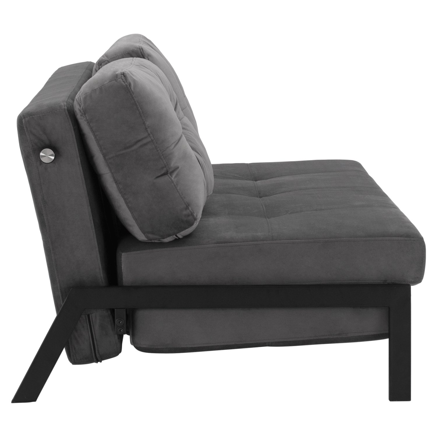 Καναπές κρεβάτι από βελούδο σε γκρι απόχρωση.