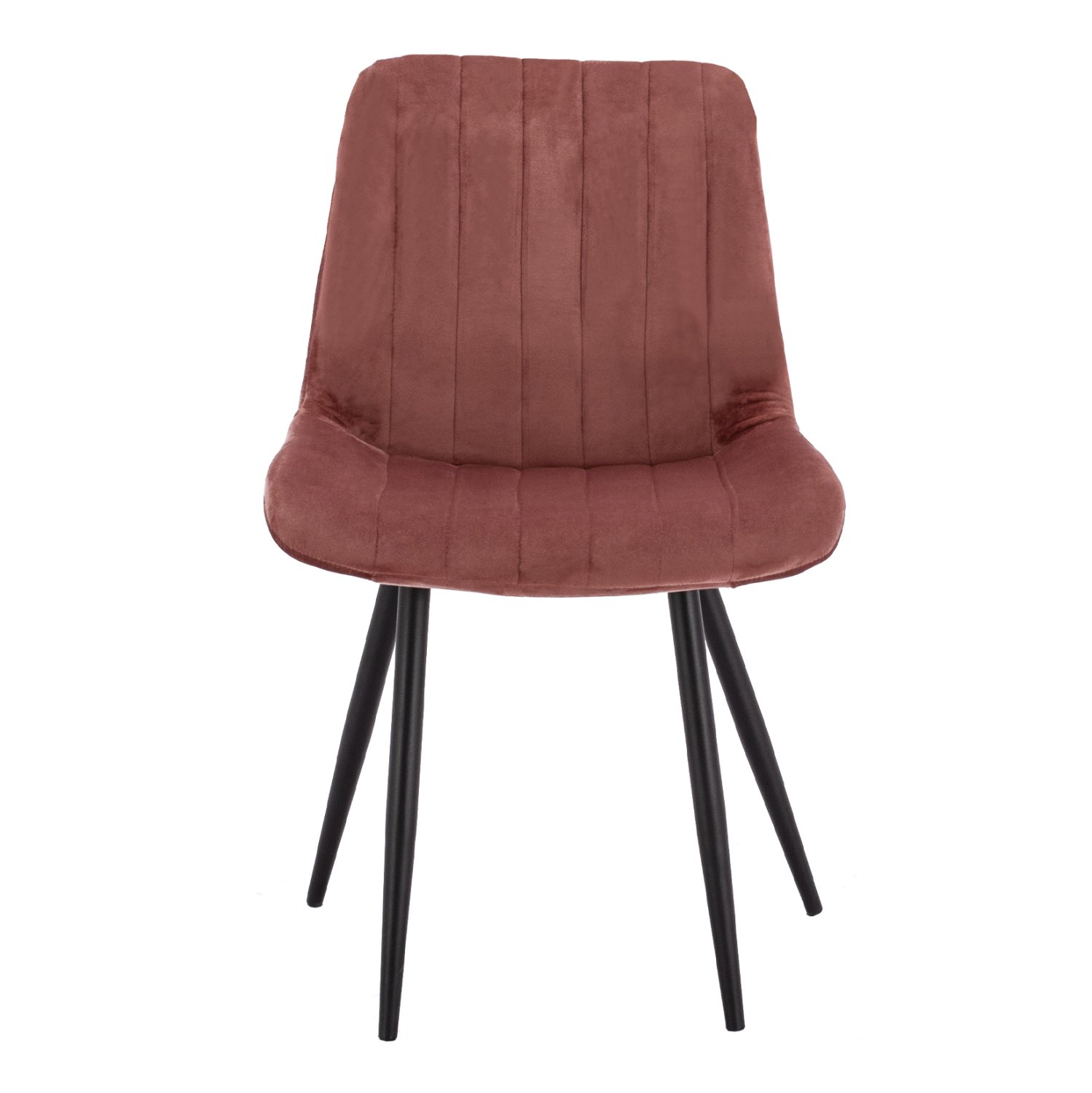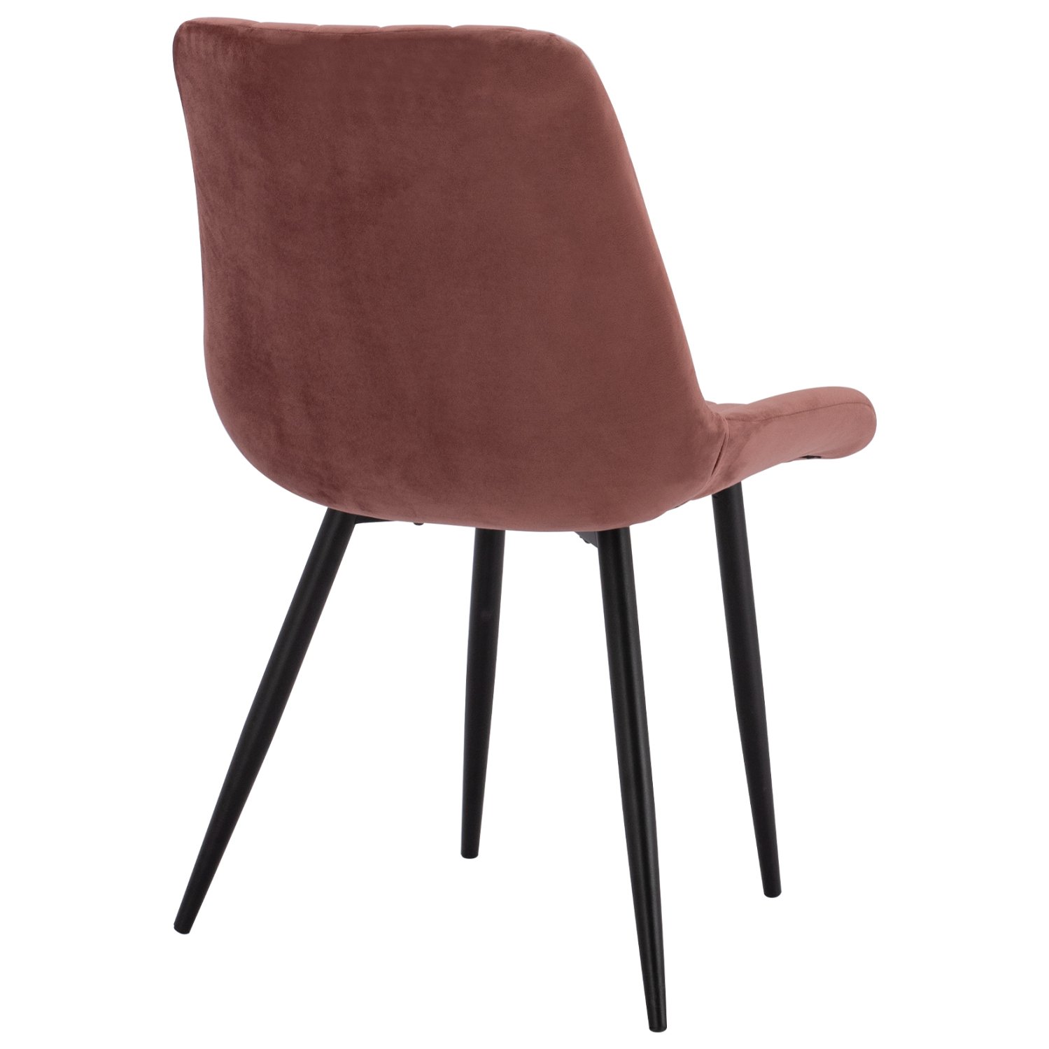Καρέκλα Chase επενδυμένη με ύφασμα βελούδο σε απόχρωση σάπιου μήλου και μεταλλικά πόδια σε μαύρη απόχρωση.