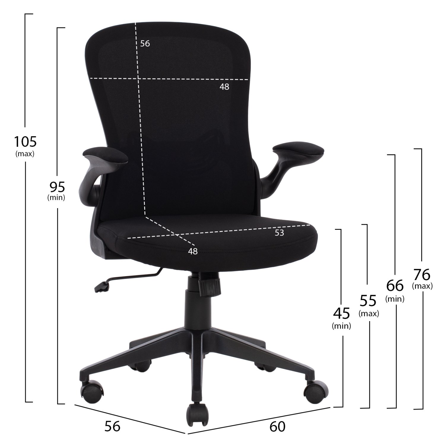 ΚΑΡΕΚΛΑ ΓΡΑΦΕΙΟΥ ELSIR HM1178.01 ΜΑΥΡΟ MESH ΜΑΥΡΟΣ ΣΚΕΛΕΤΟΣ 60x56x105 εκ.