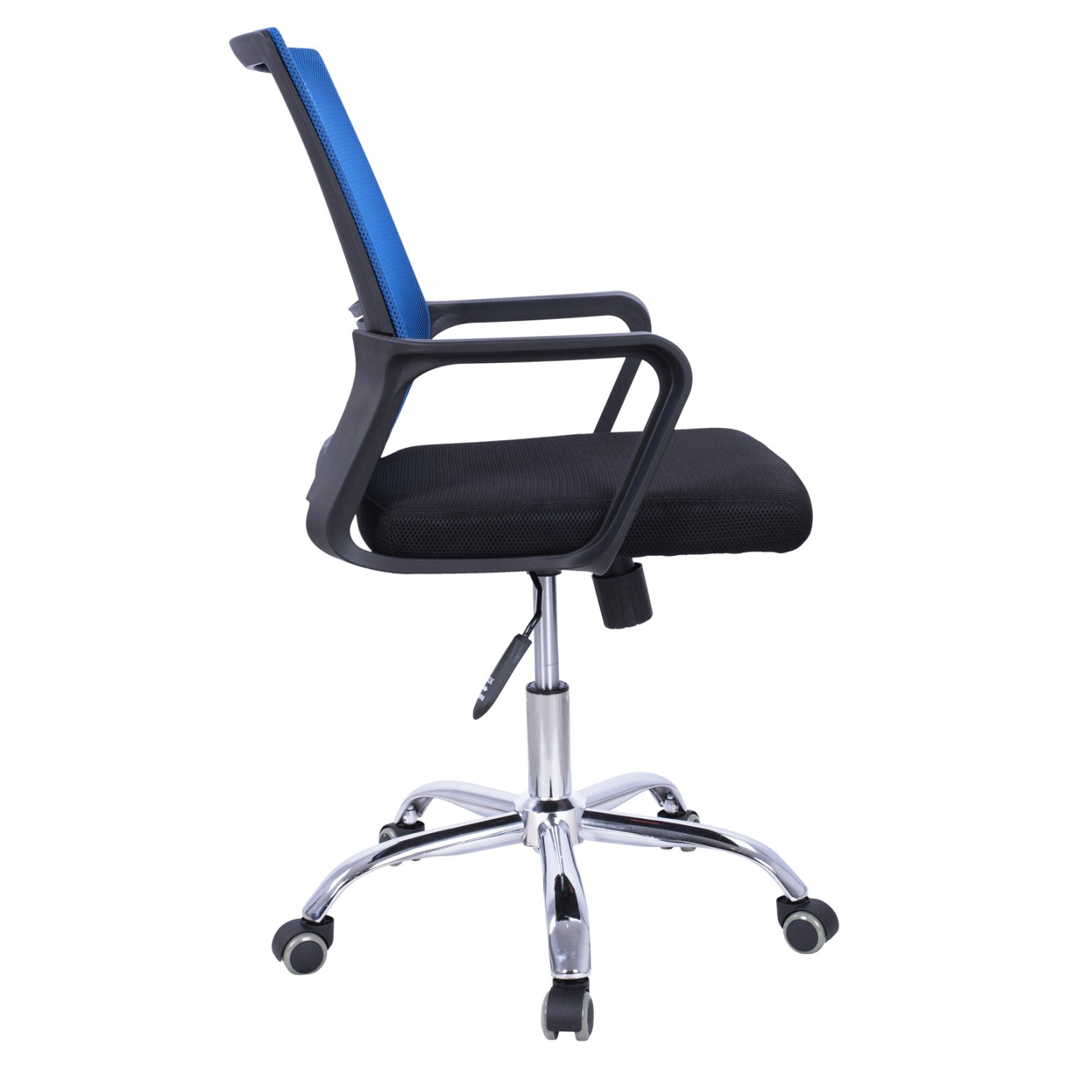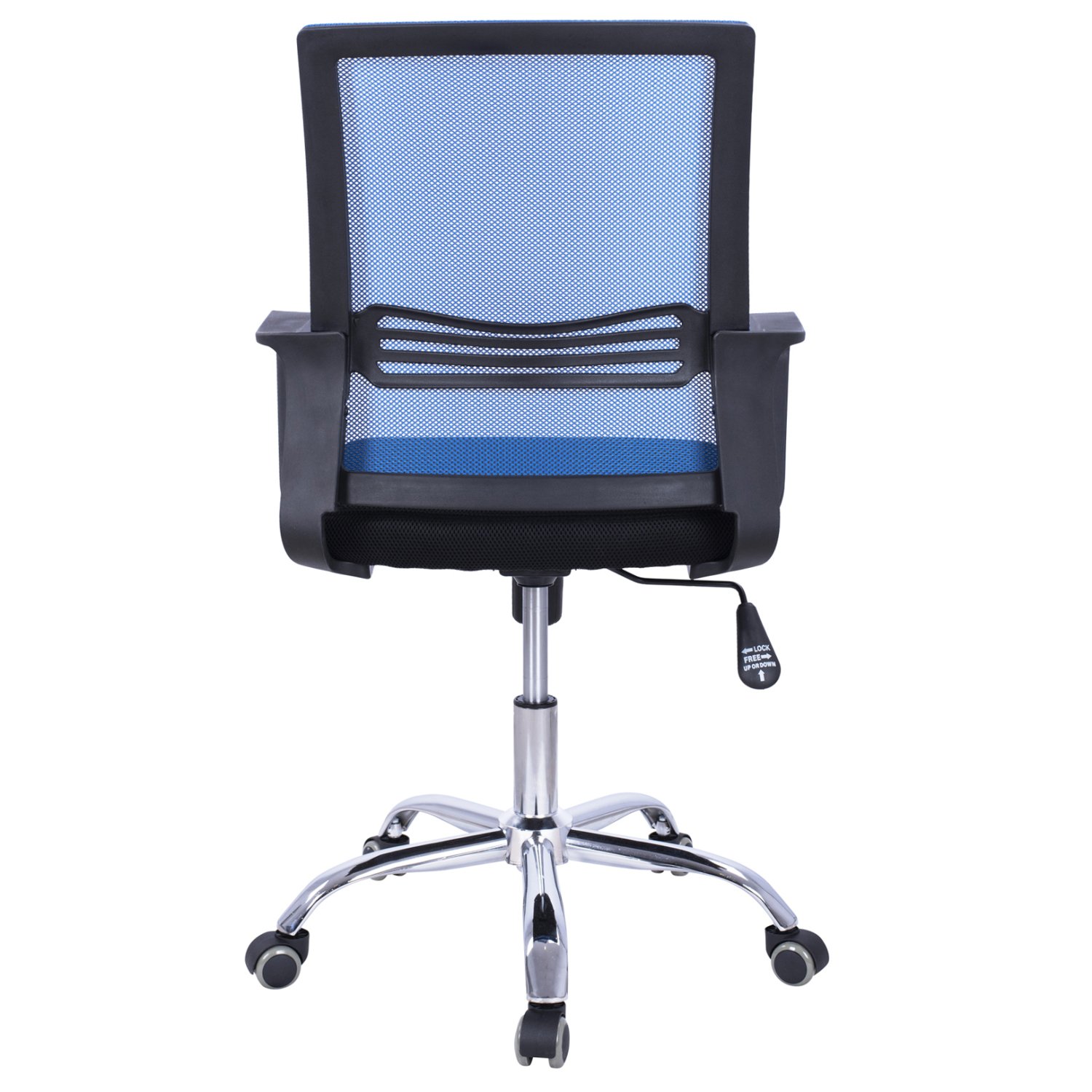 Το κύριο χαρακτηριστικό της καρέκλας είναι το μπλε ύφασμα της πλάτης που είναι mesh, δηλαδή διάτρητο. Αυτό σημαίνει ότι αφήνει την πλάτη να αναπνέει και να μην ιδρώνει προσφέροντας άνεση για πολύωρη χρήση.