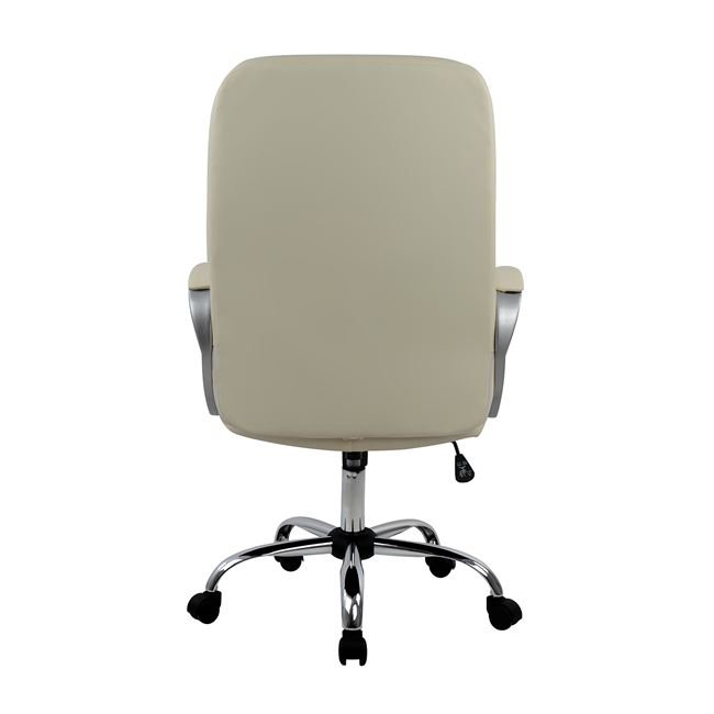 Διευθυντική καρέκλα γραφείου “IVERN” σε εκρού χρώμα. Μια «πλούσια» καρέκλα γραφείου με ψηλά μπράτσα με κλίση και επενδυμένα με μια λεπτή στρώση αφρολέξ σε PU δέρμα. Η πλάτη είναι ψηλή με πλούσια στρώση από αφρώδη υλικά για άνεση κατά την χρήση και υποστηρίζει ολόκληρο τον κορμό σας, ενώ είναι επενδυμένη με υψηλής ποιότητας PU δέρμα , όπως επίσης και το φαρδύ και αναπαυτικό κάθισμα με την αναπαυτική επιφάνεια. Η βάση είναι χρωμιωμένη σε σχήμα «αστέρι».