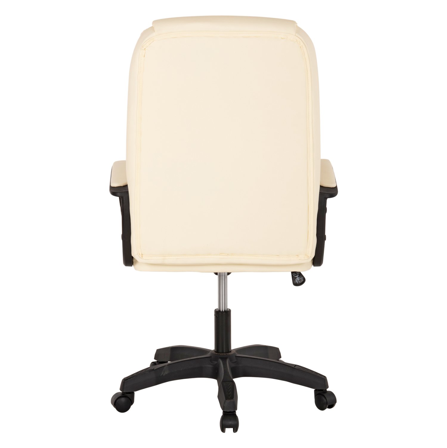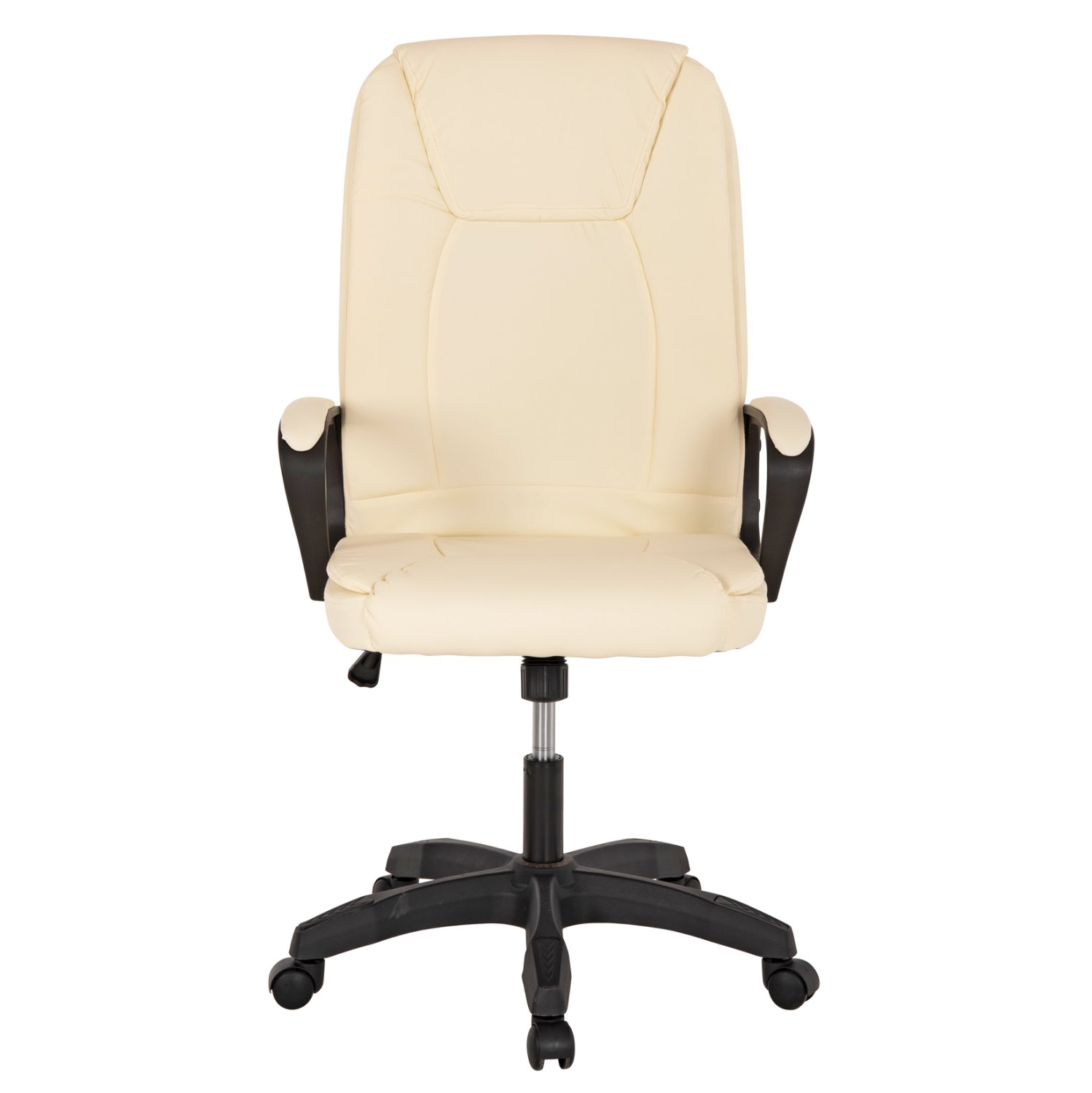 ΗΜ1188.03–Kαρέκλα γραφείου σε ΕΚΡΟΥ χρώμα με αναπαυτικά μπράτσα σε ΜΑΥΡΟ χρώμα με ΕΚΡΟΥ μαξιλαράκια με εργονομική κλίση. Η πλάτη είναι ψηλή ενώ έχει πλούσια στρώση από αφρώδη υλικά, υποστηρίζοντας ολόκληρο τον κορμό σας, ενώ είναι επενδυμένη με υψηλής ποιότητας PU δέρμα, όπως επίσης και το αναπαυτικό κάθισμα με την εξτρά αφρώδη επιφάνεια. Η βάση είναι μαύρη σε σχήμα «αστέρι» και είναι κατασκευασμένη από πολυπροπυλένιο.