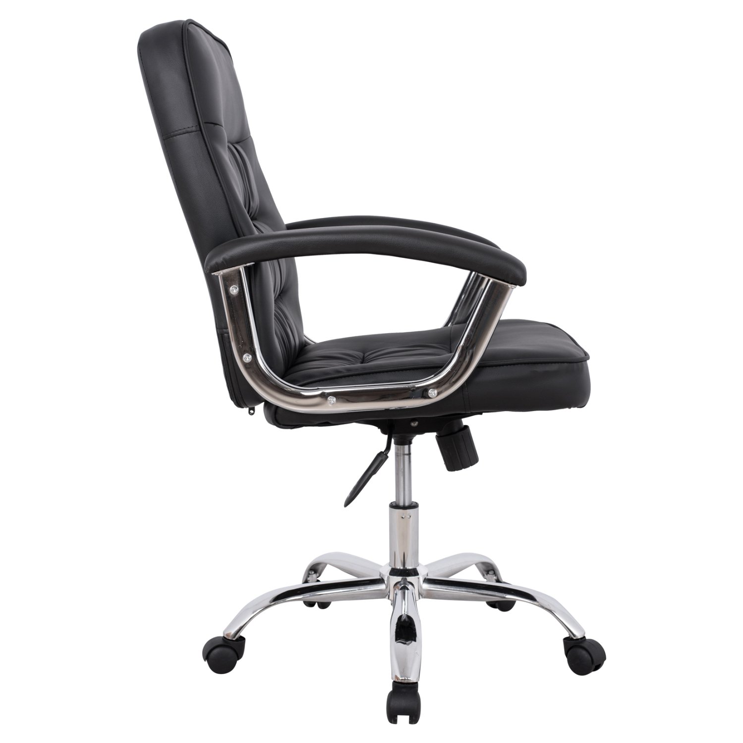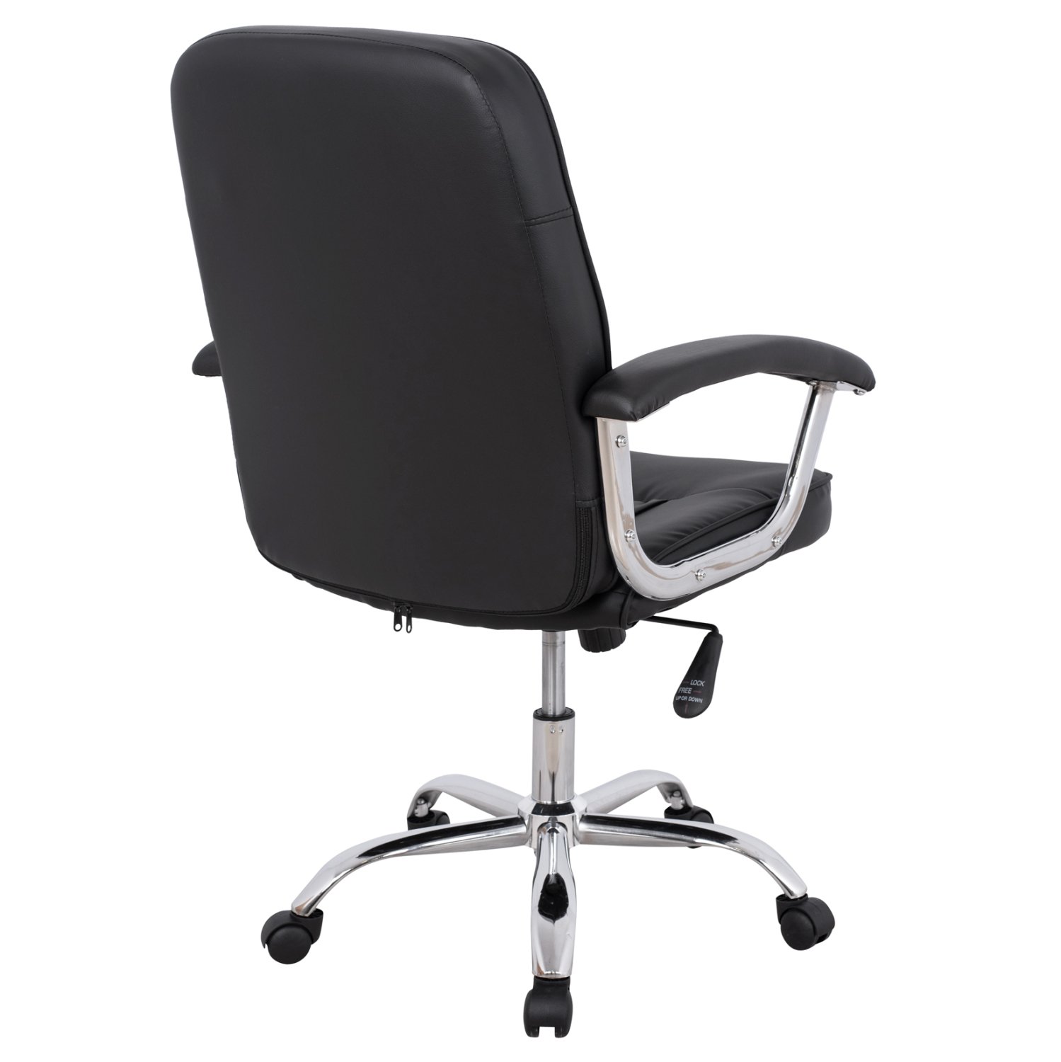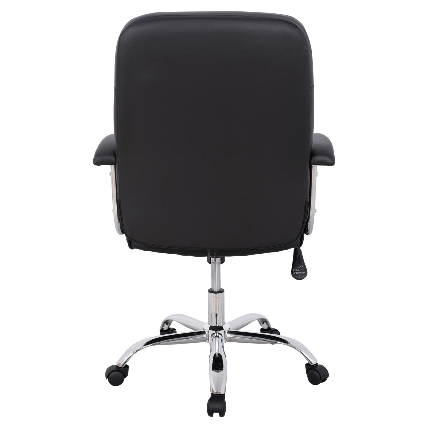 Διευθυντική καρέκλα γραφείου “RYLIE” σε μαύρο χρώμα. Μια «πλούσια» καρέκλα γραφείου με ψηλά μπράτσα με ελαφριά κλίση, επενδυμένα με μια λεπτή στρώση αφρολέξ σε PU δέρμα. Η πλάτη είναι ημίψηλη με πλούσια στρώση από αφρώδη υλικά για άνεση κατά την χρήση και υποστηρίζει ολόκληρο τον κορμό σας, ενώ είναι επενδυμένη με υψηλής ποιότητας PU δέρμα, όπως επίσης και το αναπαυτικό κάθισμα. Η βάση είναι χρωμιωμένη σε σχήμα «αστέρι» με κυρτά πόδια και μαύρα ροδάκια.