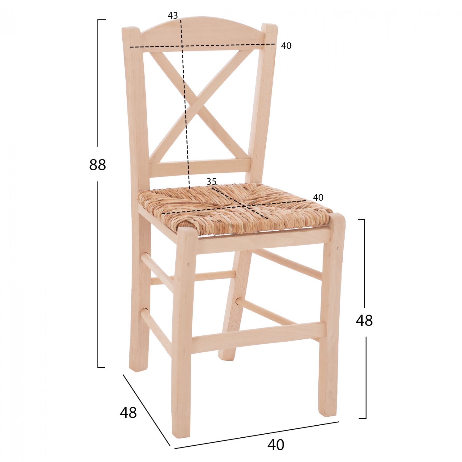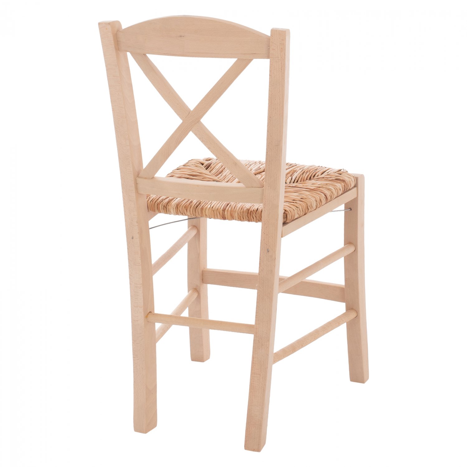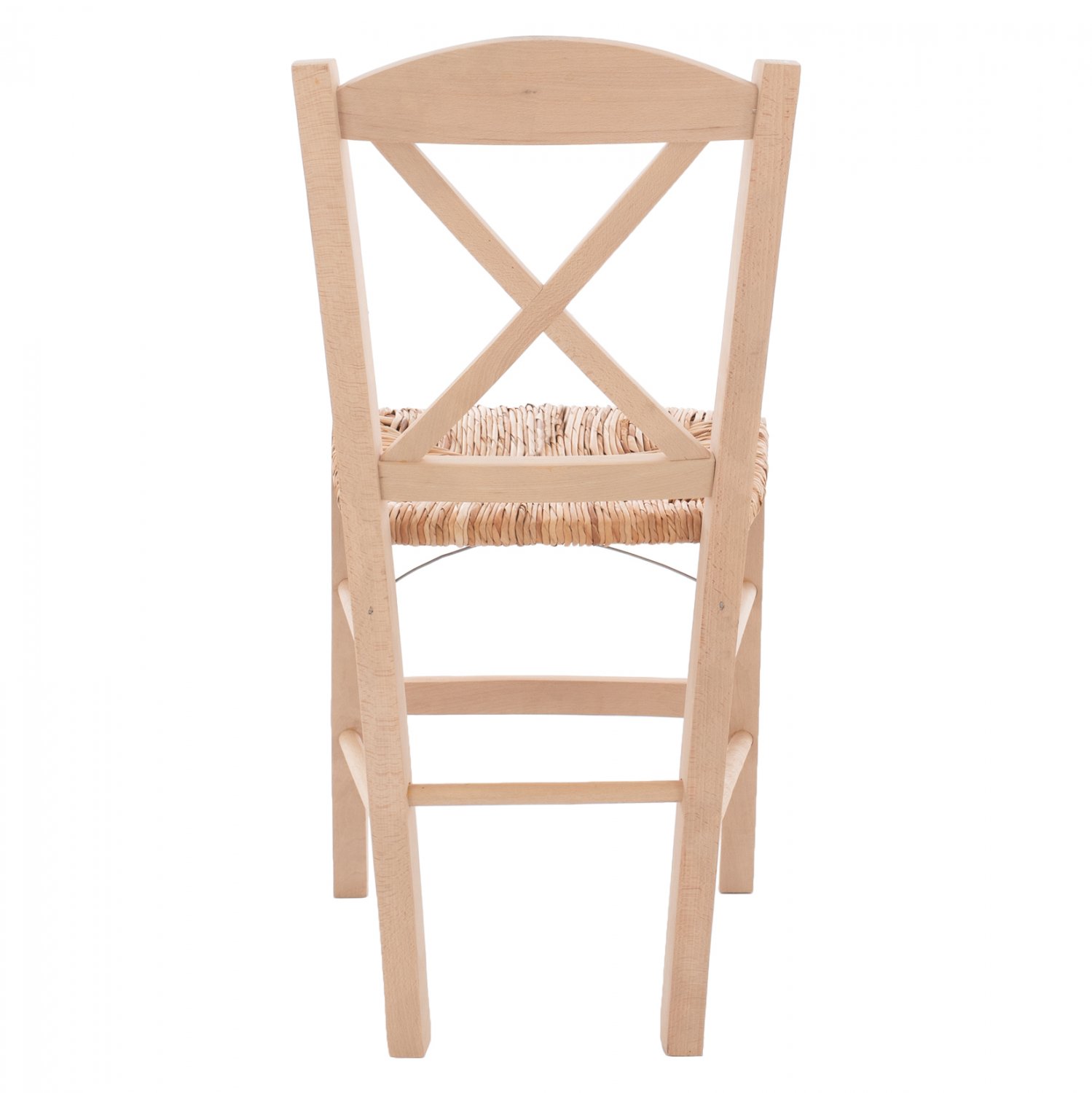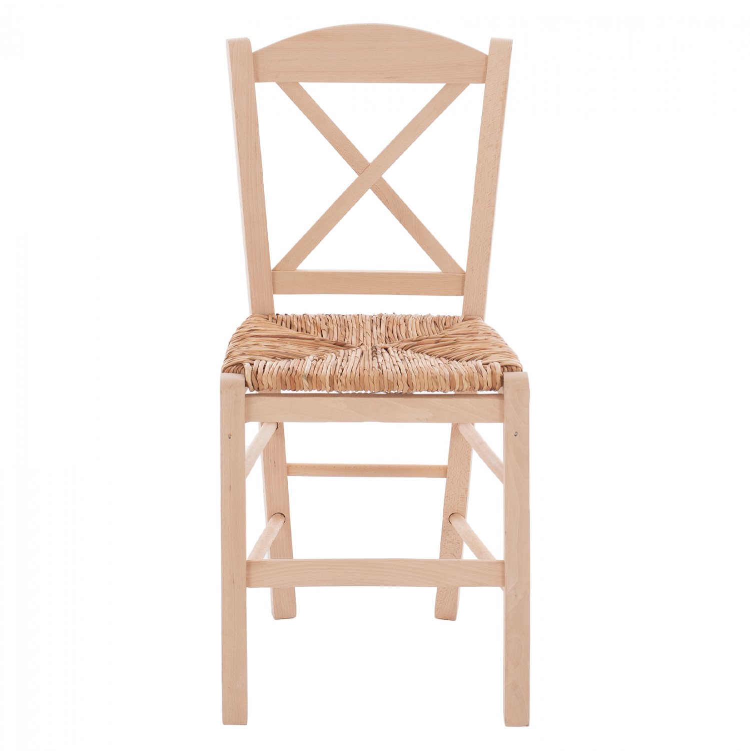 Καρέκλα καφενείου χιαστή από μασίφ ξύλο φουρνιστής οξιάς άβαφη και ψάθα.