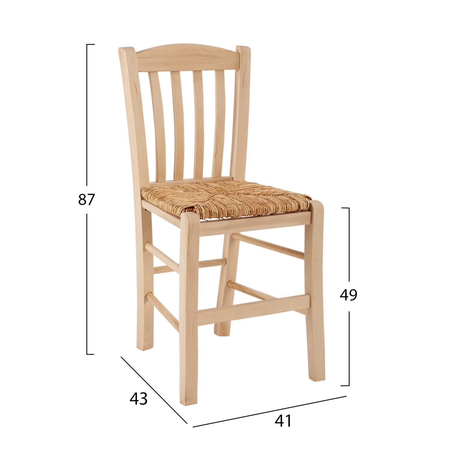 Καρέκλα καφενείου από μασίφ ξύλο φουρνιστής οξιάς άβαφο και ψάθα.