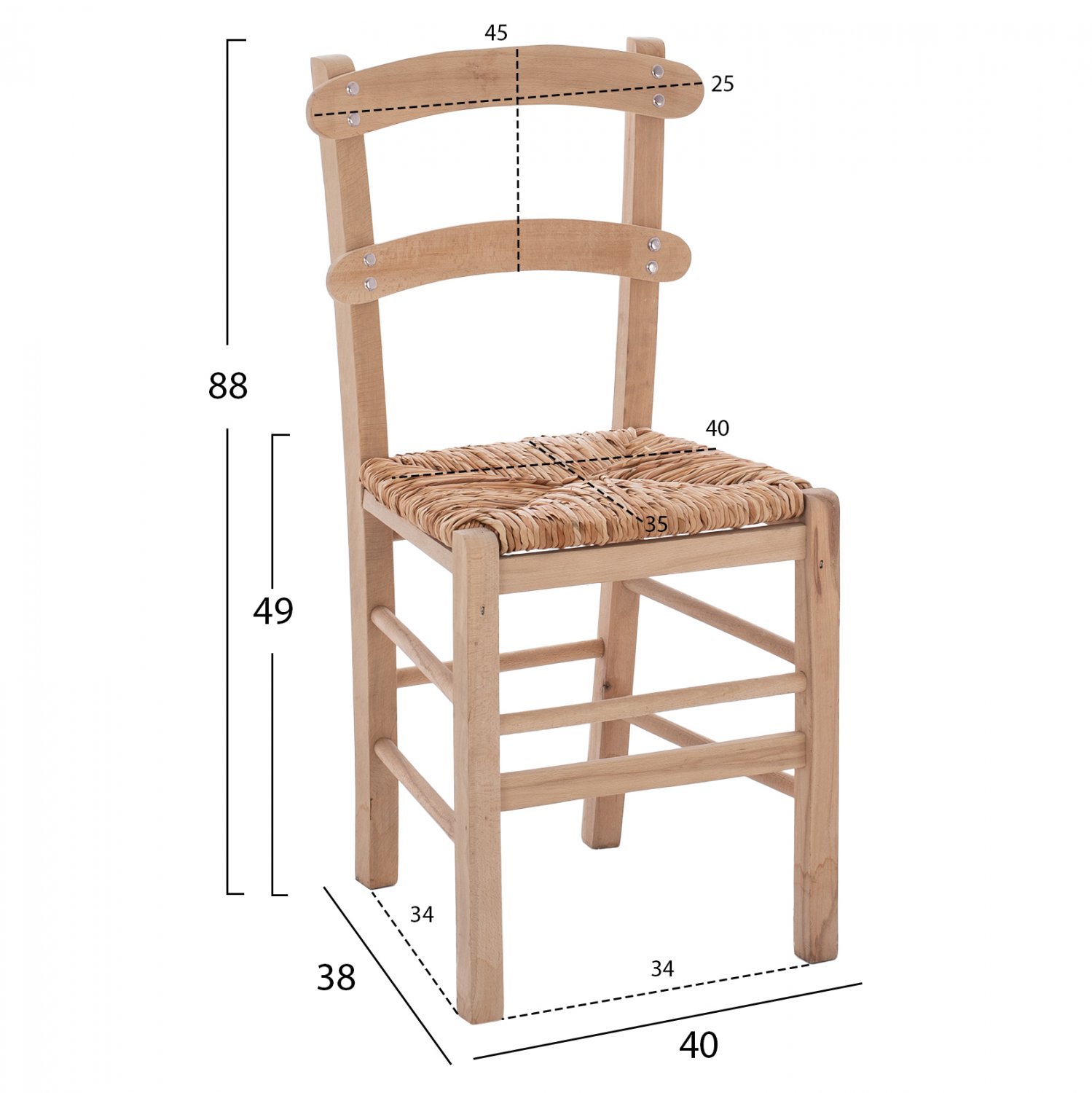 Καρέκλα καφενείου καρφωτή από μασίφ ξύλο φουρνιστής οξιάς άβαφο και ψάθα.