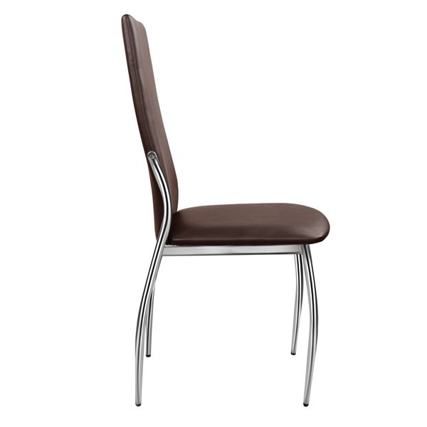 Καρέκλα κουζίνας από μεταλλικό σκελετό χρωμίου και επένδυση από δερματίνη σε καφέ χρώμα.
