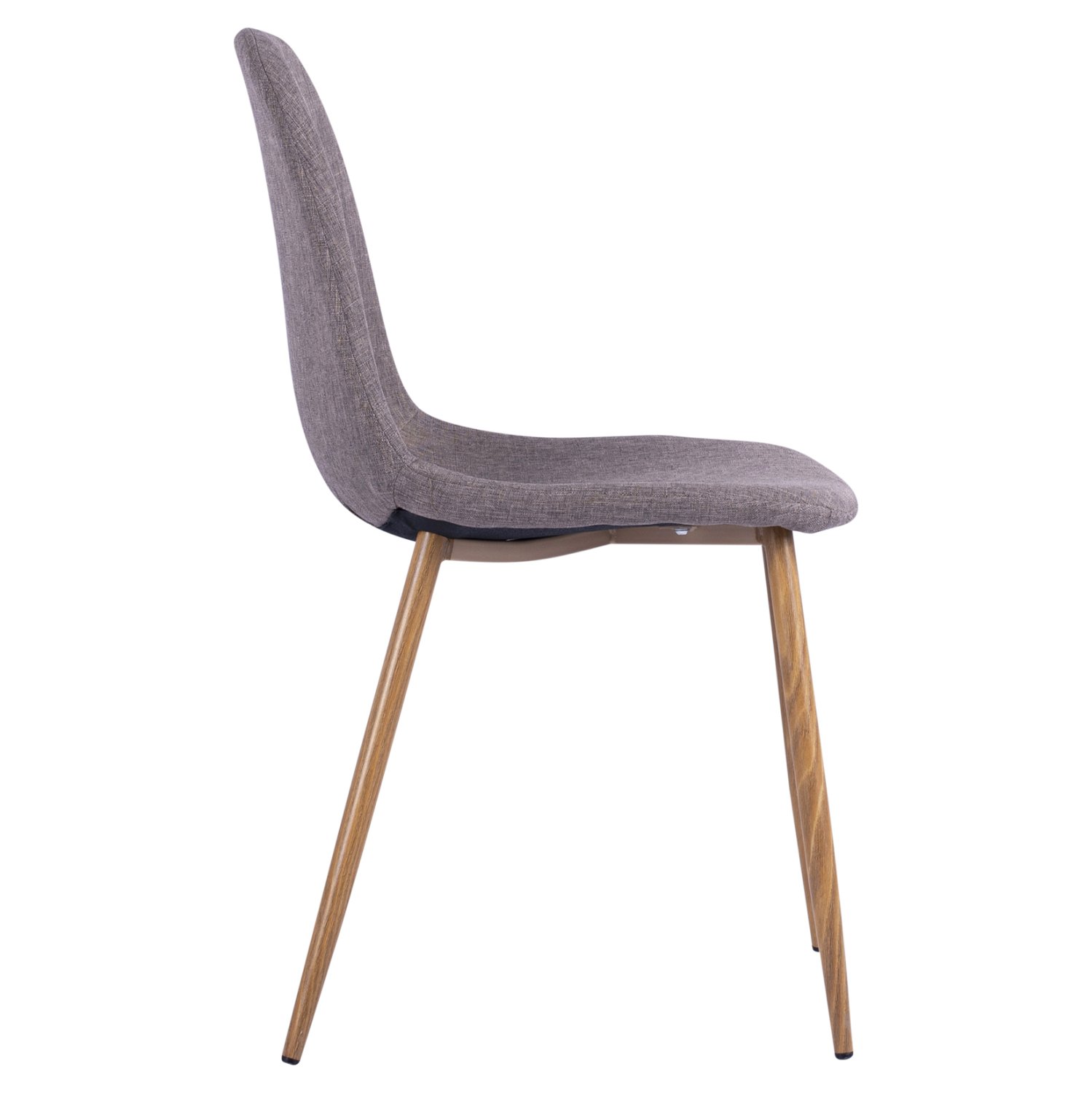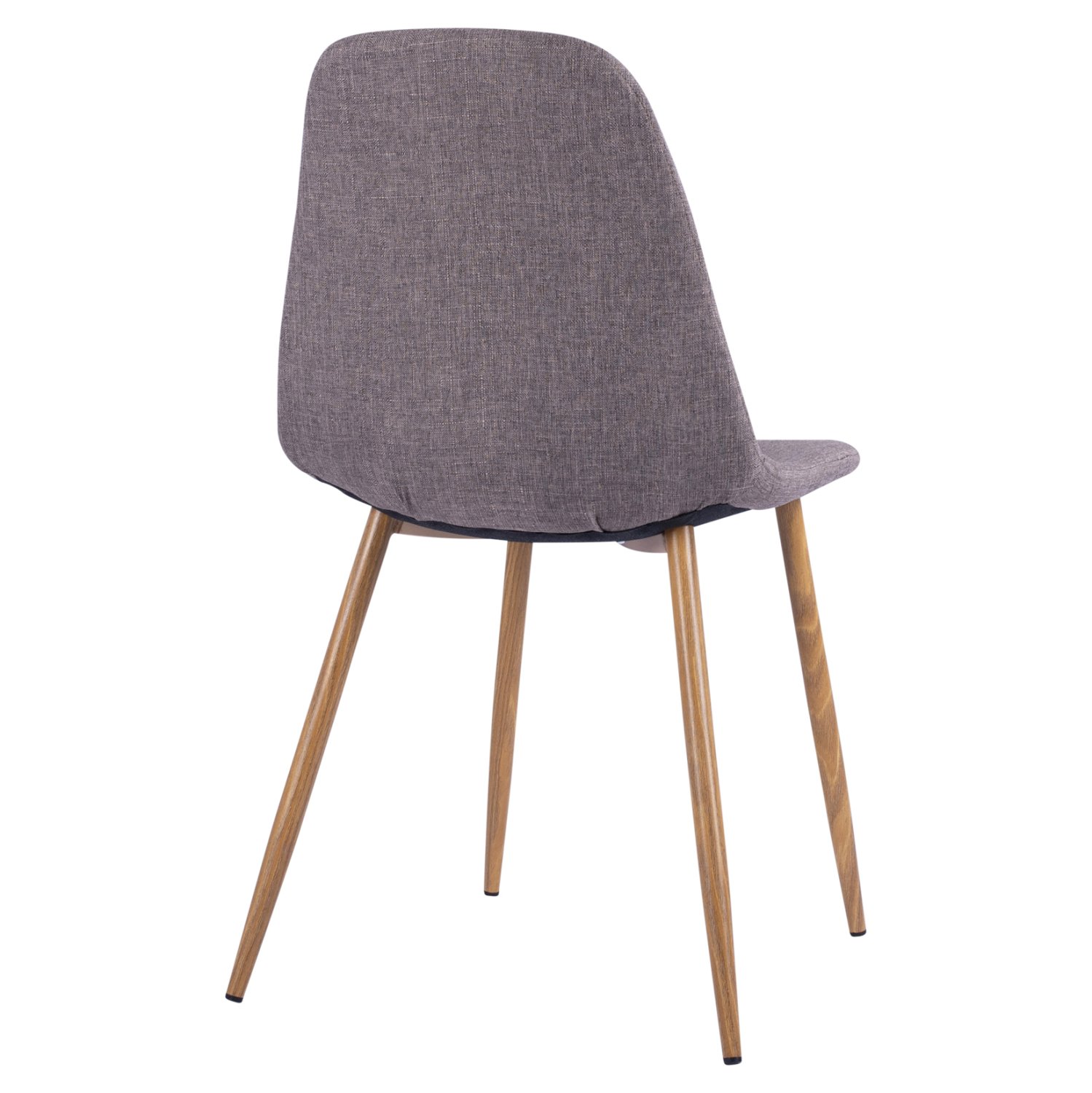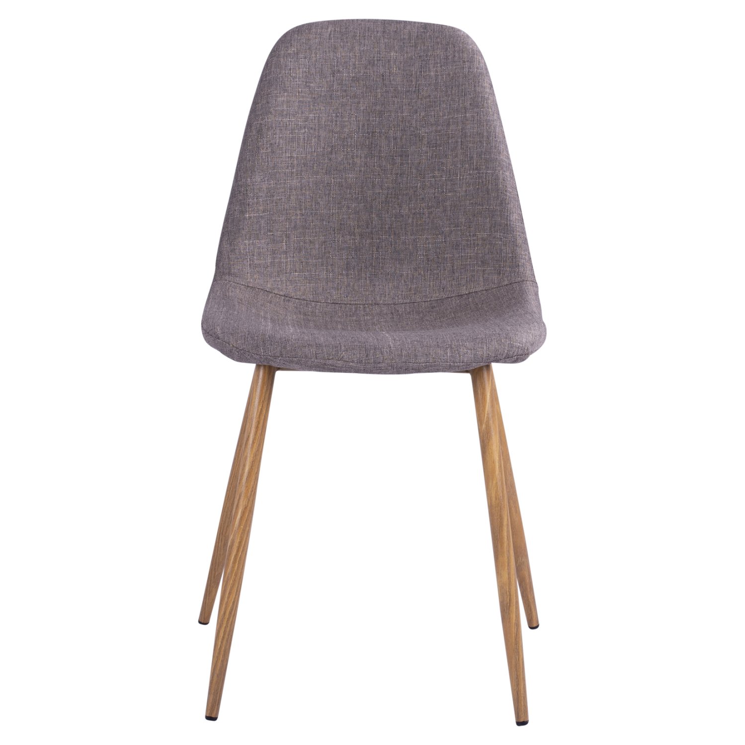 Η κατασκευή της είναι από μέταλλο και ύφασμα ενώ το κάθισμα της καρέκλας είναι επενδυμένο με ύφασμα σε καφέ απόχρωση. Τα πόδια είναι μεταλλικά για μεγαλύτερη αντοχή, βαμμένα στο χρώμα του ξύλου, δίνοντας τους την όψη του φυσικού.