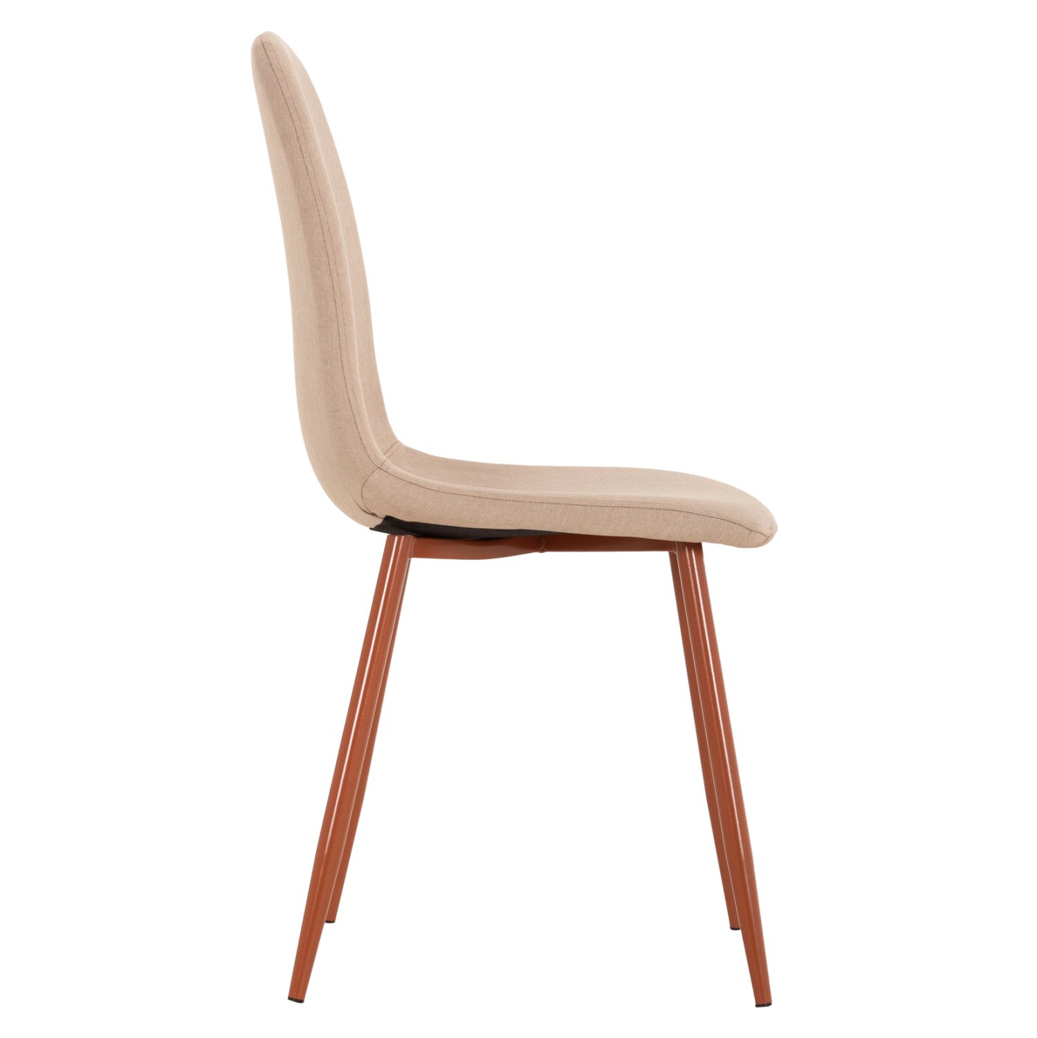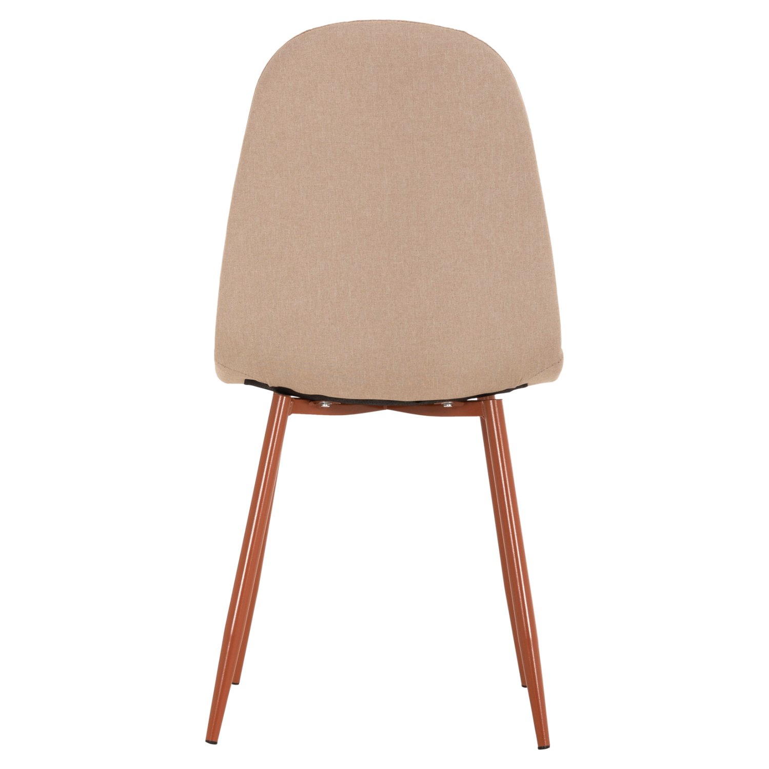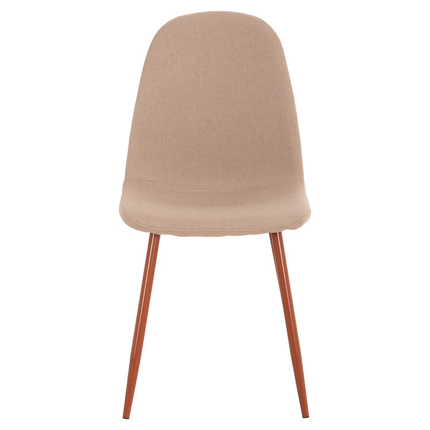 Το κάθισμα της καρέκλας είναι επενδυμένο με ύφασμα σε μπεζ απόχρωση. Τα πόδια είναι μεταλλικά για μεγαλύτερη αντοχή.