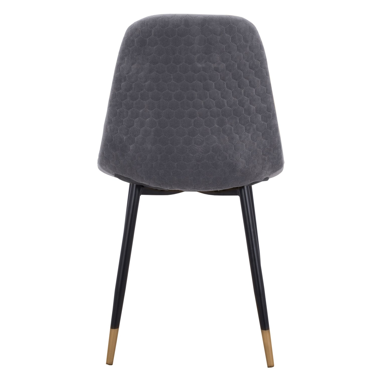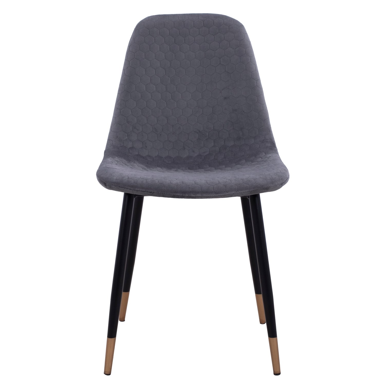 Η καρέκλα LUCILLE είναι επενδυμένη με ύφασμα βελούδο σε γκρι απόχρωση με μεταλλικό σκελετό σε μαύρη ματ απόχρωση και χρυσές λεπτομερείς.