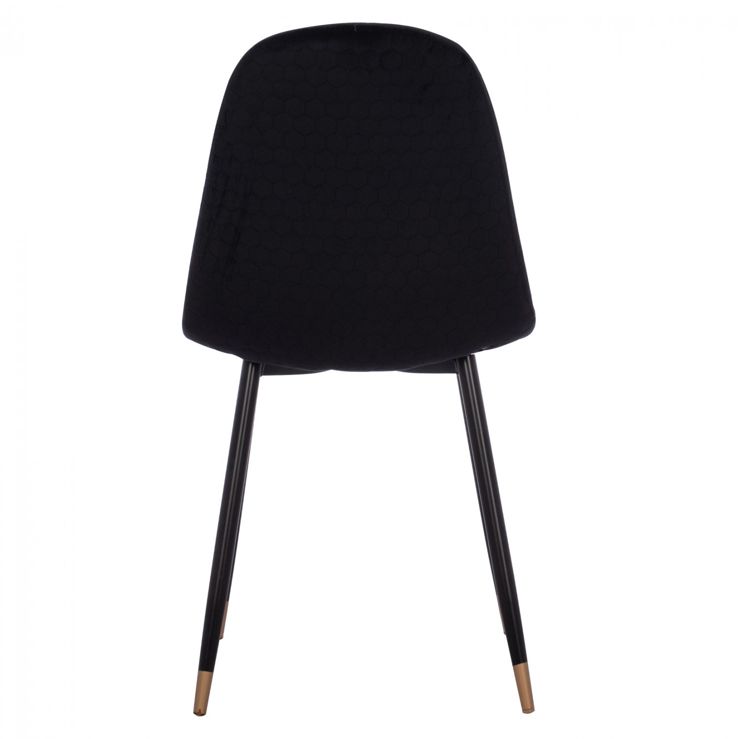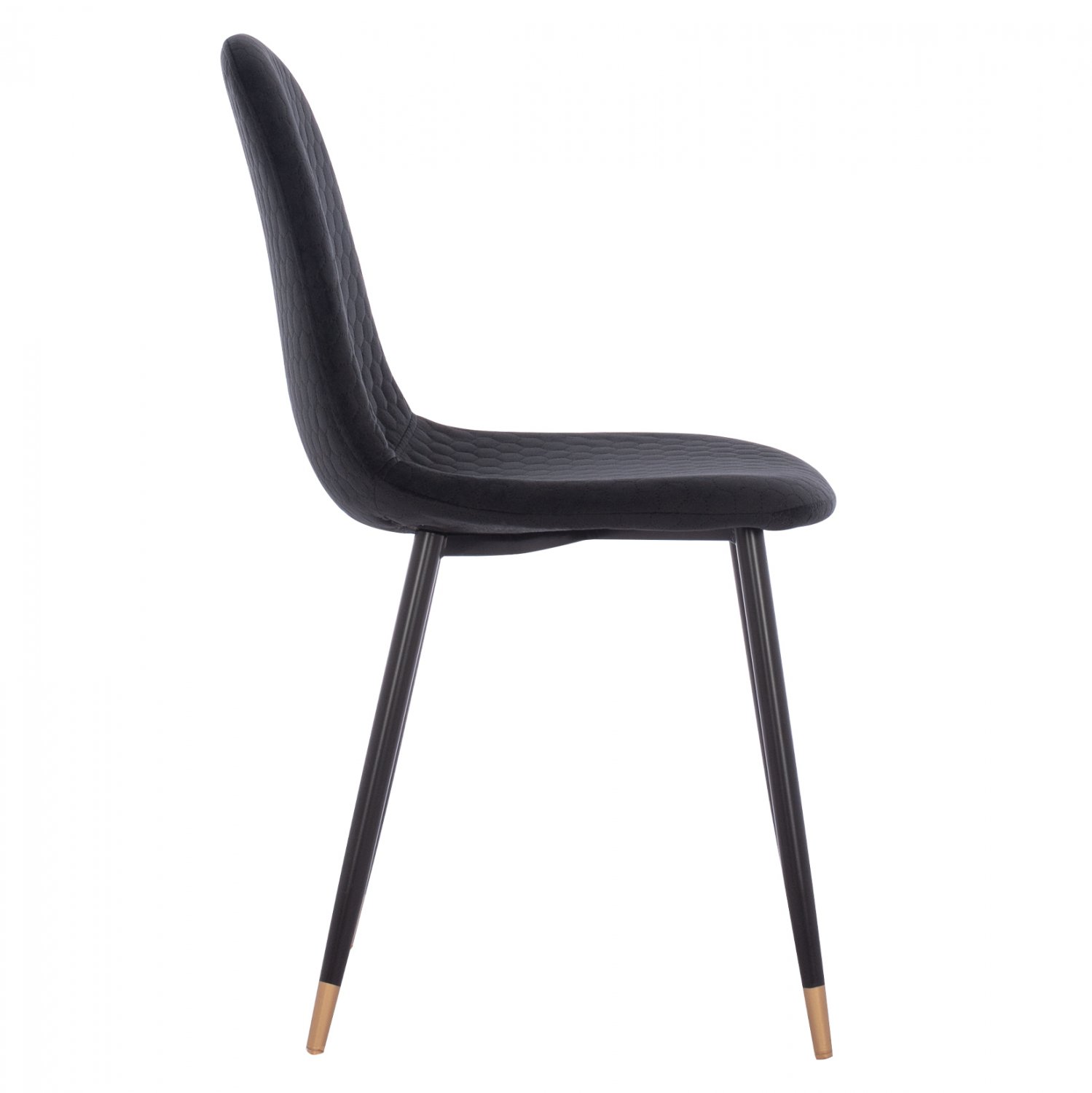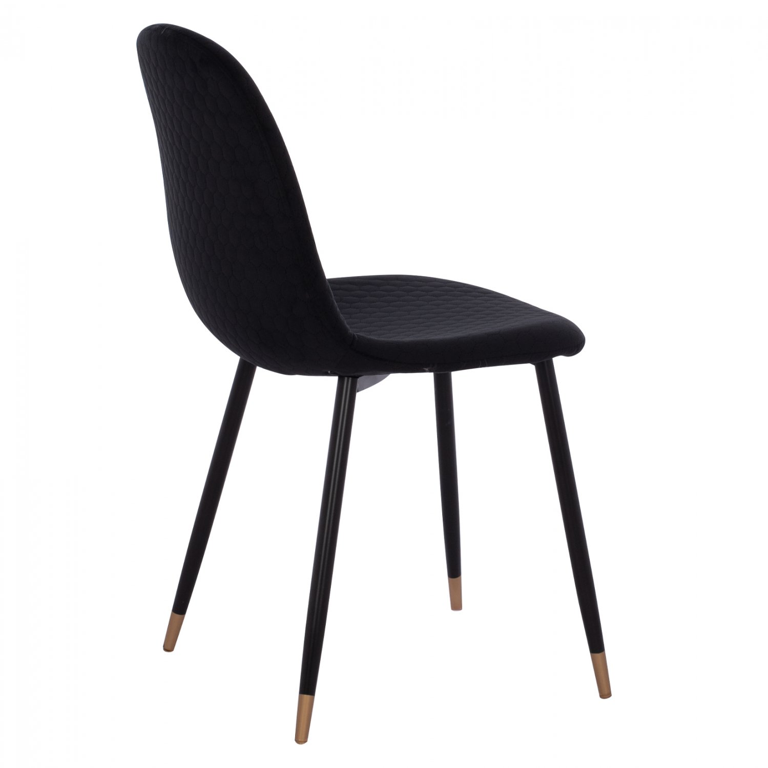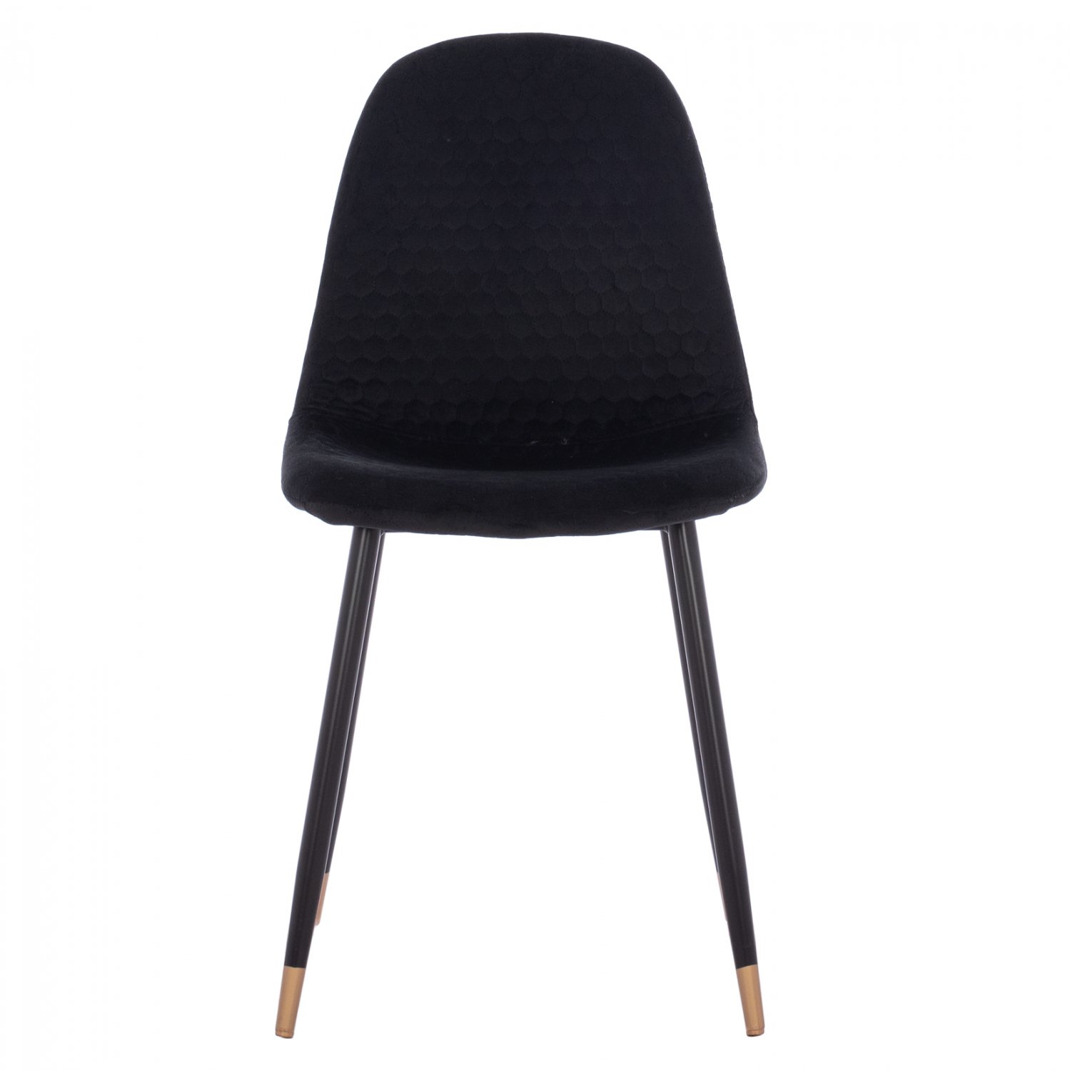 Καρέκλα από βελούδινο ύφασμα σε μαύρη απόχρωση, με μεταλλικό σκελετό σε μαύρη απόχρωση με χρυσές λεπτομέρειες στο τελείωμα των ποδιών 45X56X81Υ εκ.