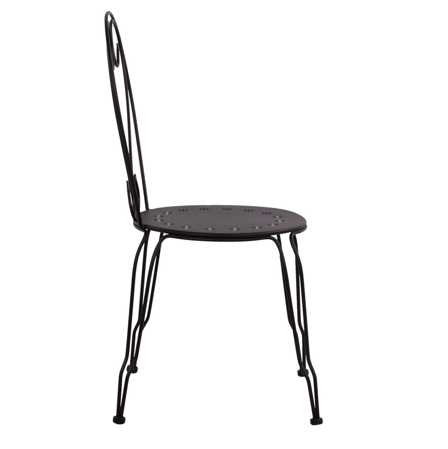 Μεταλλική καρέκλα εξωτερικού χώρου σε μαύρη απόχρωση όπου στην βάση υπάρχει σχέδιο με λουλούδια.