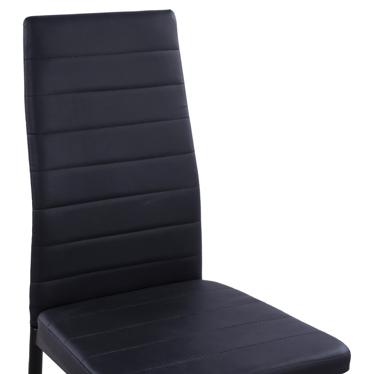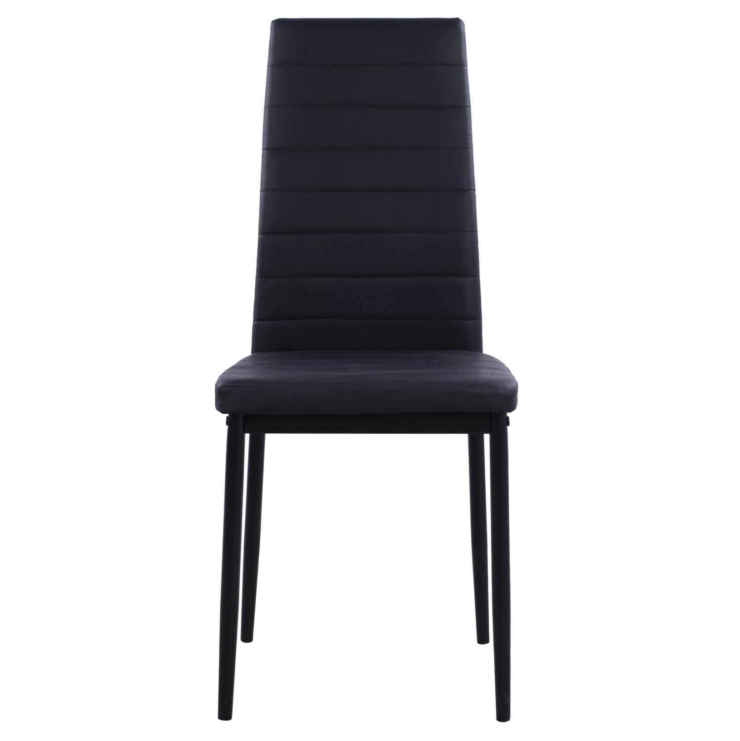 Καρέκλα κουζίνας από σκελετό μεταλλικό σε μαύρη απόχρωση και επένδυση από δερματίνη σε μαύρο χρώμα.