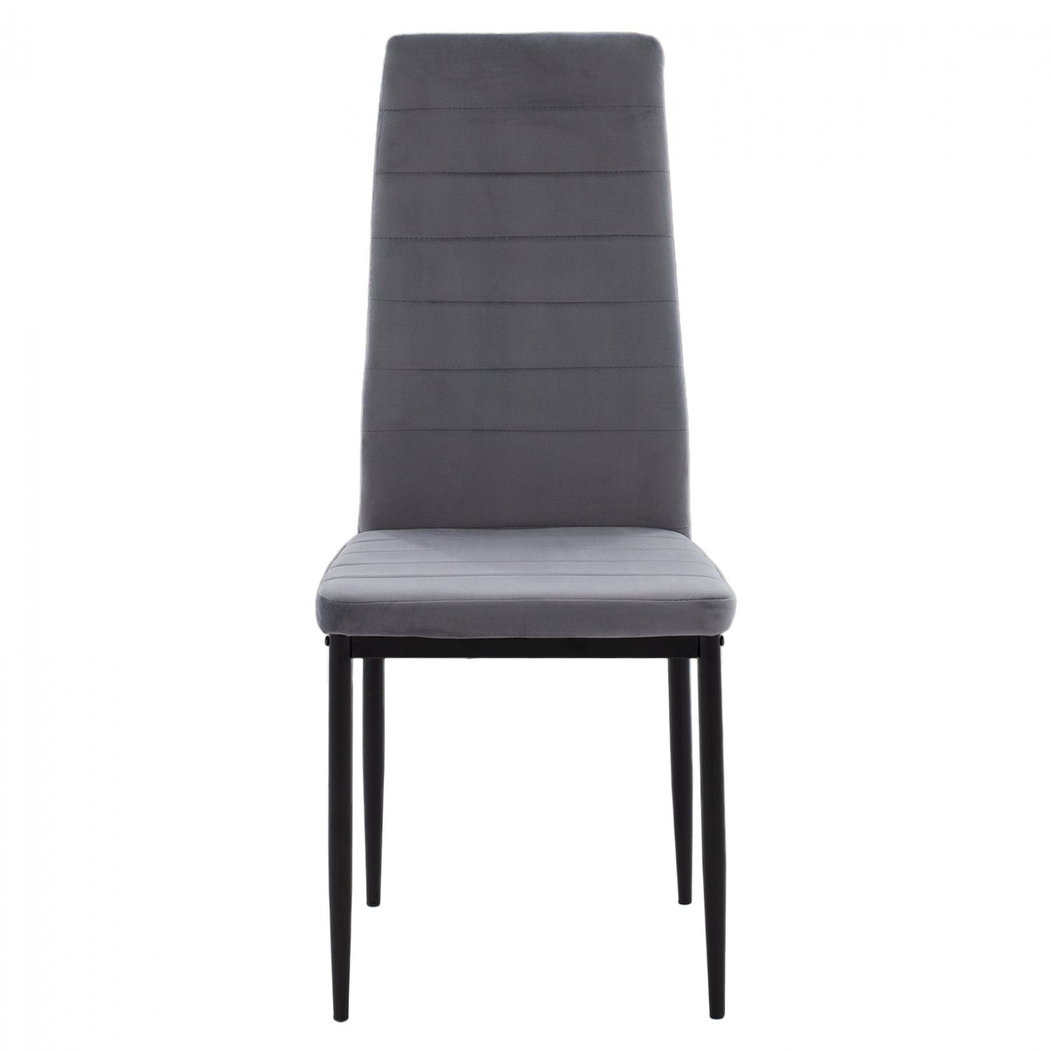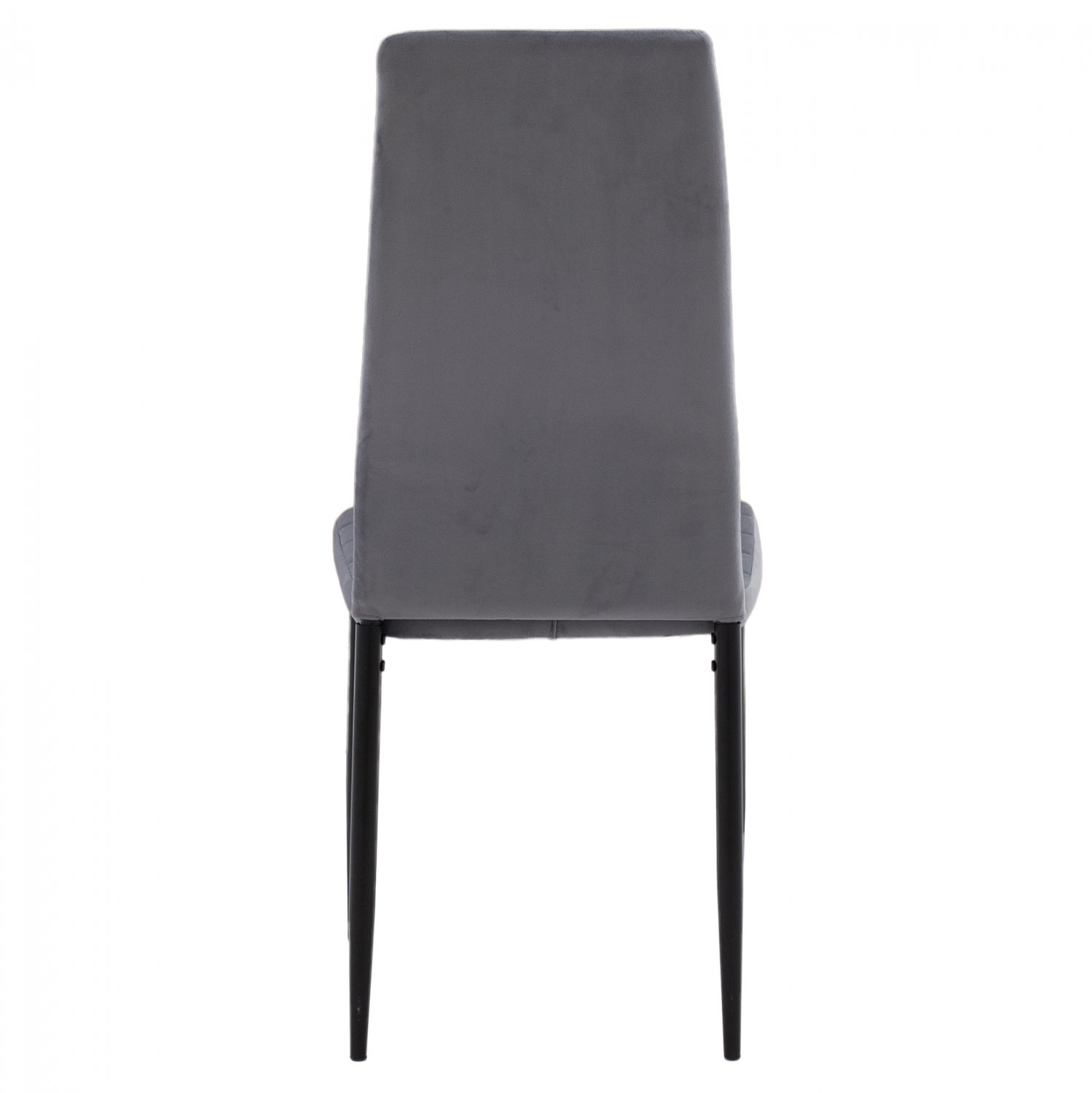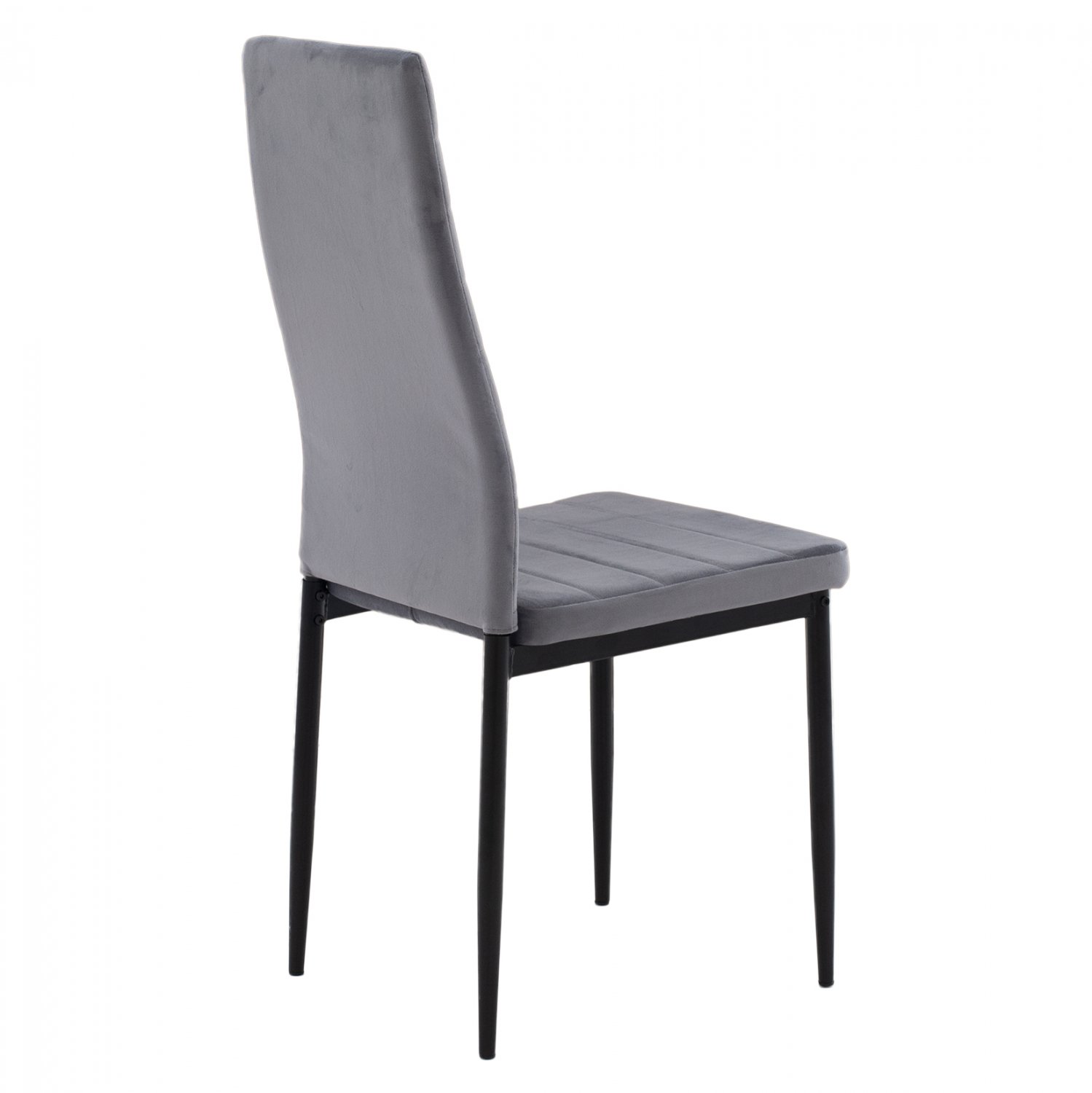 Καρέκλα κουζίνας από σκελετό μεταλλικό K/D σε μαύρη απόχρωση και επένδυση από βελούδινο ύφασμα σε χρώμα γκρι.