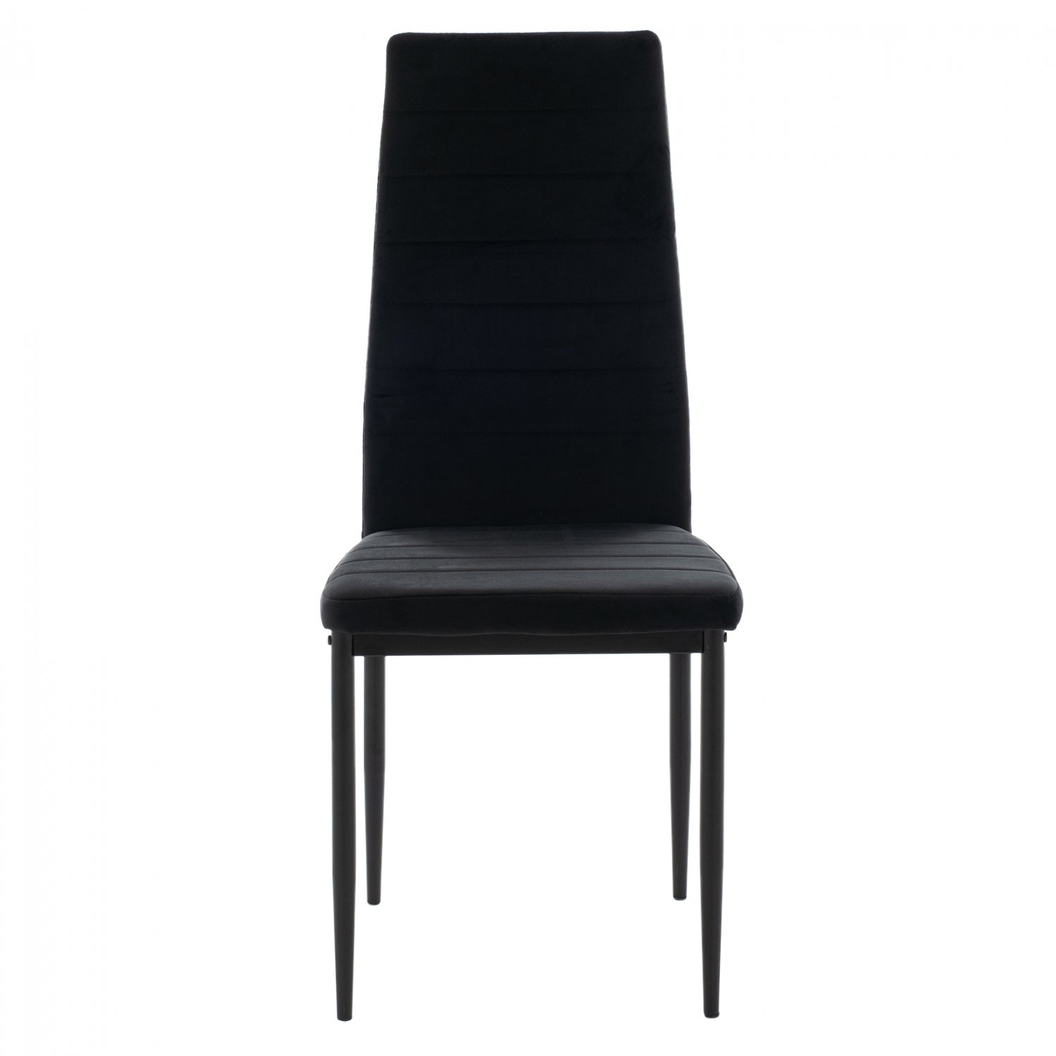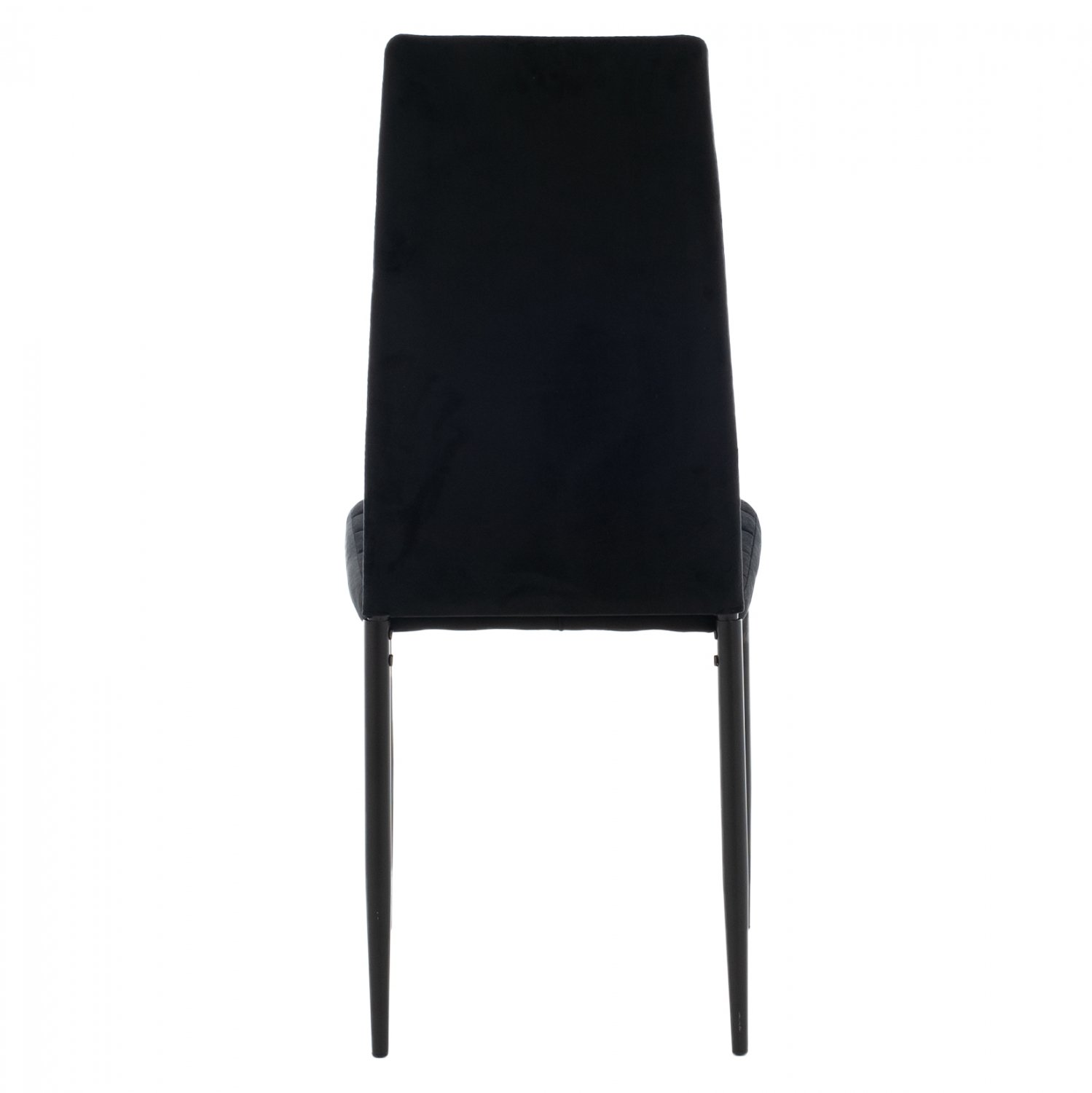 Καρέκλα κουζίνας από σκελετό μεταλλικό K/D μαύρου χρώματος και επένδυση από βελούδινο ύφασμα σε μαύρη απόχρωση.