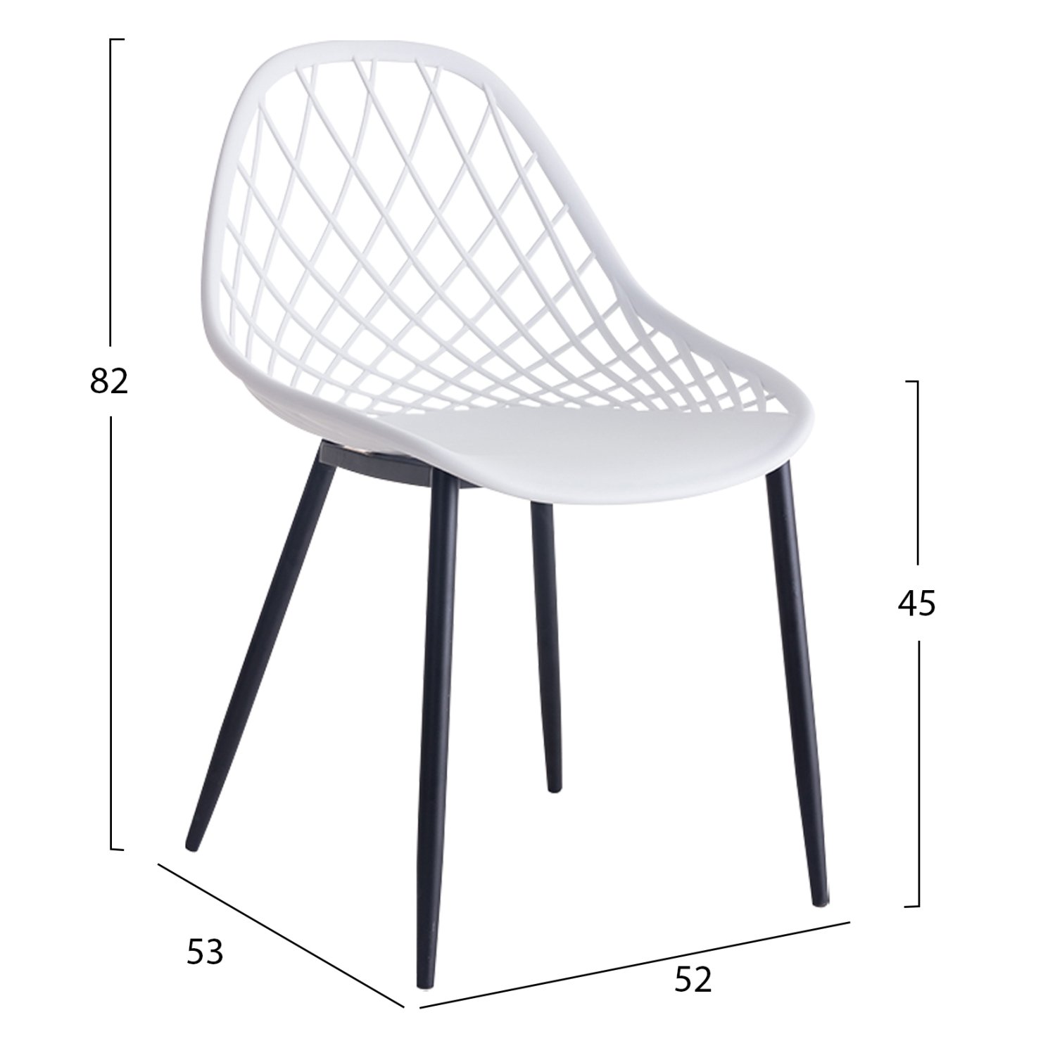 Η καρέκλα ΗΜ9524.01 έχει όλα όσα θα θέλατε από ένα τέτοιο έπιπλο. Είναι ποιοτική και κομψή στην όψη, και σίγουρα τραβάει τα βλέμματα. Η πλάτη και το κάθισμα είναι ένα μονοκόμματο χυτό κομμάτι πολυπροπυλενίου σε ΛΕΥΚΟ χρώμα. Η πλάτη, μάλιστα, έχει «δικτυωτό» σχήμα, πράγμα που την κάνει ευχάριστη και ελαφριά. Η βάση του καθίσματος και τα πόδια είναι μεταλλικά σε χρώμα ΜΑΥΡΟ ΜΑΤ. Όλη η κατασκευή είναι ελαφριά και άνετη, και θα γίνει το αγαπημένο κάθισμα σε όποιο χώρο κι αν τοποθετηθεί χάρη στην πρακτικότητά του. Ιδανική επιλογή και για επαγγελματική χρήση, όπως σε catering κτλ.