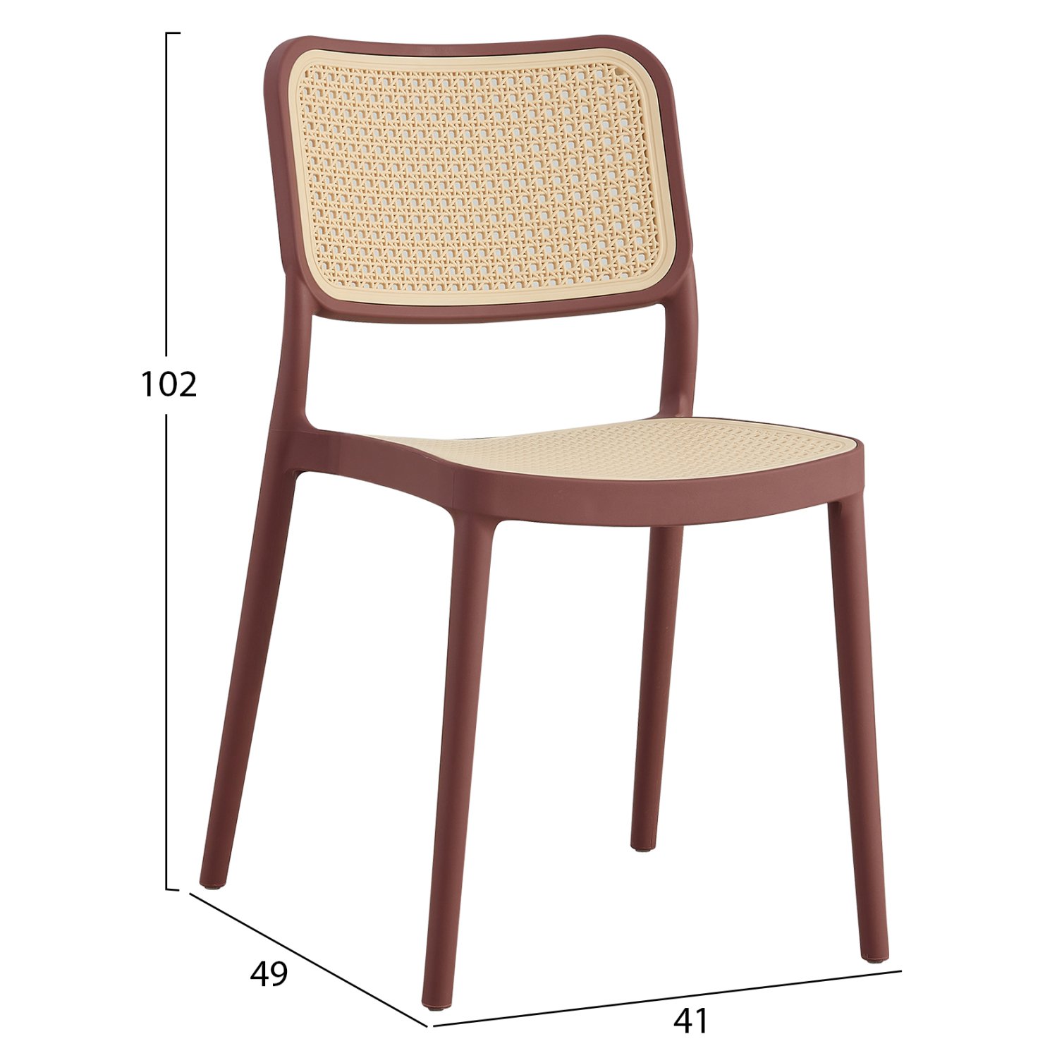 Η καρέκλα MEKO έχει όλα όσα θα θέλατε από ένα τέτοιο έπιπλο. Είναι ποιοτική και κομψή στην όψη, και σίγουρα τραβάει τα βλέμματα. Όλη η καρέκλα είναι από μονοκόμματο πολυπροπυλένιο σε ΚΕΡΑΜΙΔΙ χρώμα με ελαφρώς κυρτή πλάτη σε ΜΠΕΖ η οποία είναι σε στύλ ψάθας πολυπροπυλενίου. Το κάθισμα είναι σε ΜΠΕΖ απόχρωση και είναι επίσης στύλ ψάθας πολυπροπυλενίου. Η καρέκλα είναι στοιβαζόμενη, ελαφριά και άνετη, και θα γίνει το αγαπημένο κάθισμα σε όποιο χώρο κι αν τοποθετηθεί χάρη στην πρακτικότητά του. Ιδανική επιλογή και για επαγγελματική χρήση, όπως σε catering κτλ.