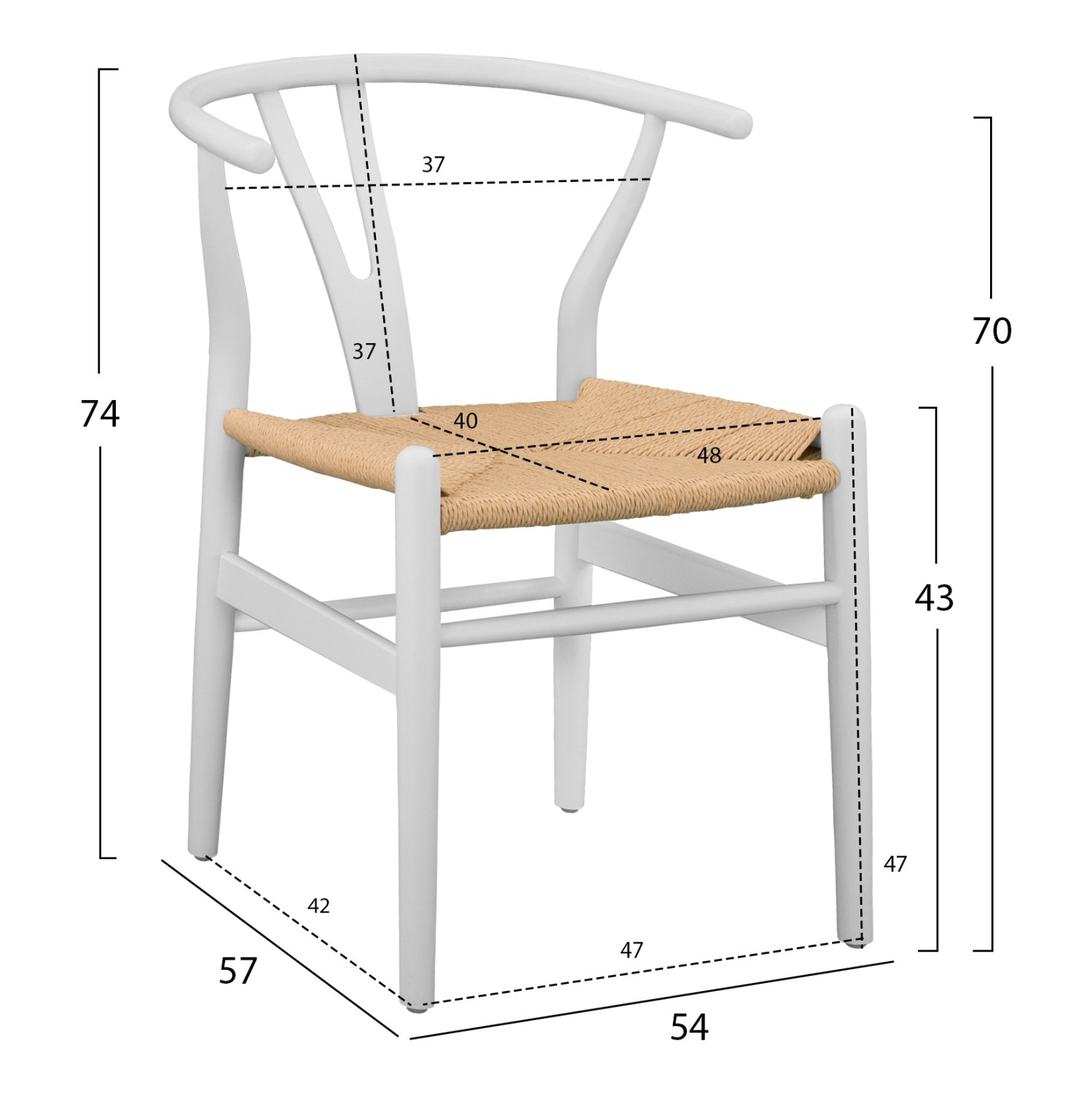 Η καρέκλα BRAVE είναι κατασκευασμένη από υψηλής αντοχής ξύλο οξιάς σε λευκή απόχρωση με κάθισμα χειροποίητης πλέξης σχοινιού σε μπεζ χρώμα.