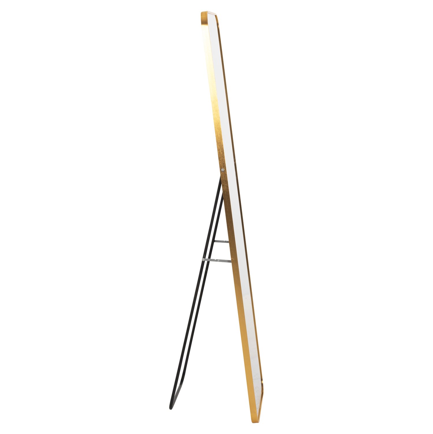 Ο ΒOELY είναι ένας καθρέφτης δαπέδου με ΧΡΥΣΟ σκελετό, κομψός και σε άκρως ικανοποιητική διάσταση. Ένα χρήσιμο «εργαλείο» για κάθε δωμάτιο που θα ταιριάξει με την διακόσμηση σας, είτε είναι κλασική είτε πιο μοντέρνα. Η στήριξη γίνεται με μια πτυσσόμενη αλουμινένια διάταξη. Ο καθρέφτης είναι ορθογώνιος με στρογγυλεμένες γωνίες και «πατάει» όμορφα στο δάπεδο.