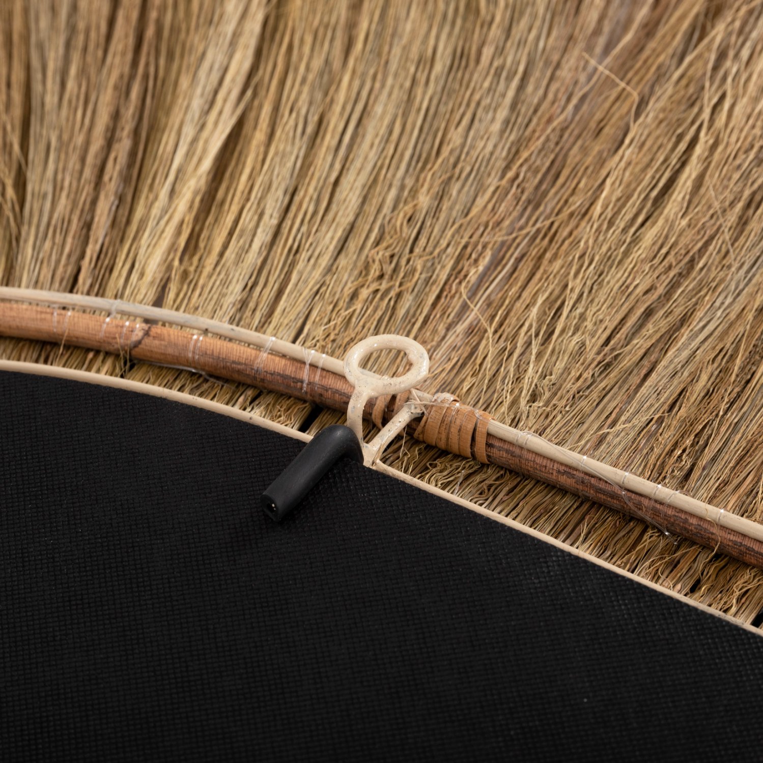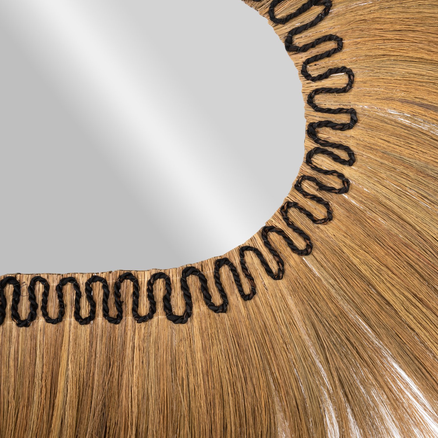 O οβάλ καθρέπτης ΗΜ7803 είναι πραγματικά ένα εντυπωσιακό κομμάτι στην διακόσμηση του χώρου σας! Το design του είναι επιβλητικό με πλαίσιο από ίνες του φυτού Rayung και ζιγκ-ζαγκ δέσιμο κοντά στον καθρέπτη με μαύρο σχοινί από ίνες φλοιού μπανάνας. Οι ίνες είναι στο φυσικό τους χρώμα το οποίο έχει ήδη αρχίσει να γίνεται καφεκίτρινο.