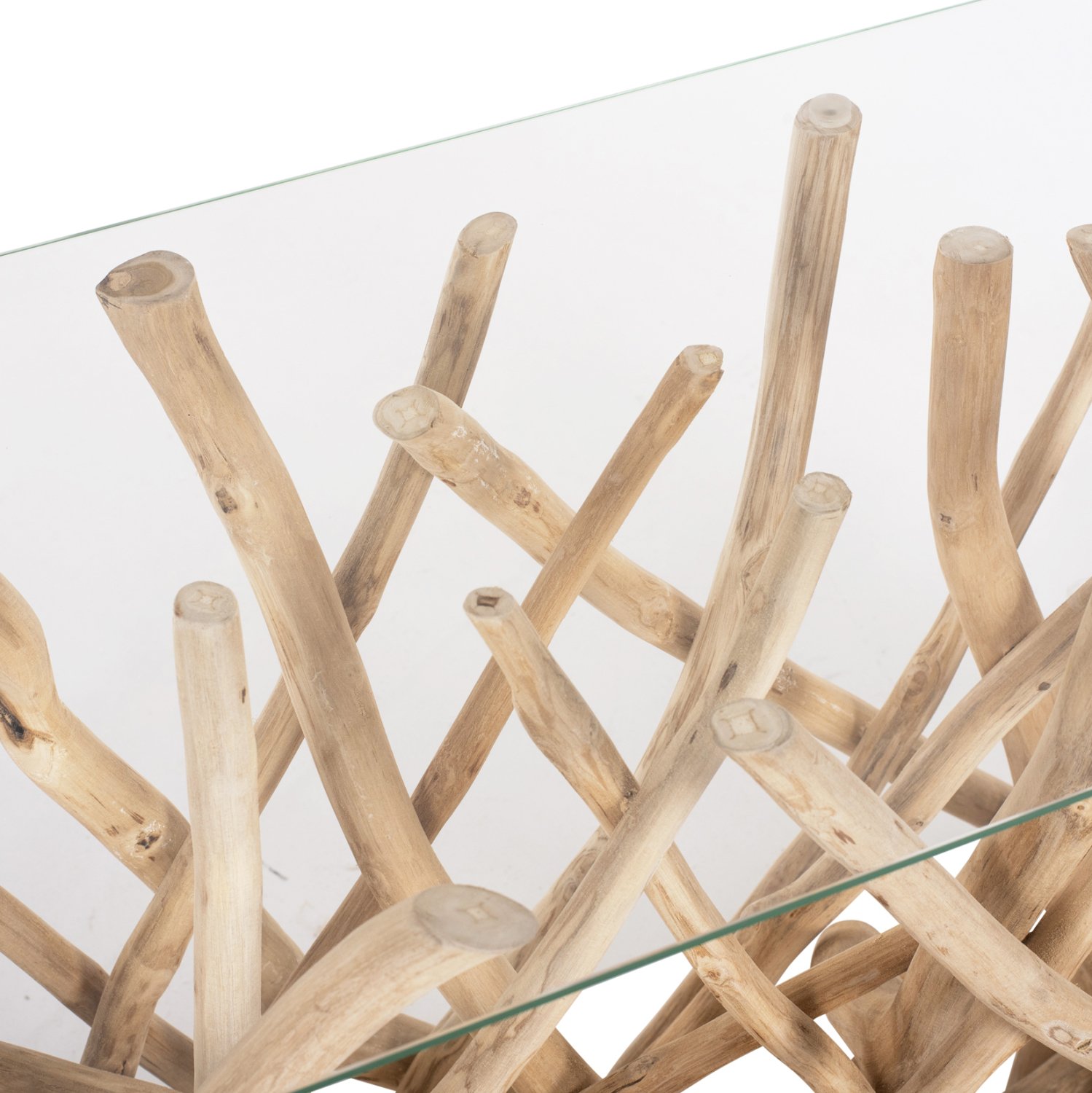 HM9373—Κονσόλα σε κανονικό ορθογώνιο σχήμα επιφάνειας από γυαλί, με σώμα από κλαδιά του δέντρου ΤΕΑΚ αντί για παραδοσιακά πόδια. Το αισθητικό αποτέλεσμα είναι όμορφο και είναι αναπόφευκτο να τραβήξει την προσοχή όλων, σε οποιοδήποτε χώρο κι αν τοποθετηθεί! Αποτελεί την επιτομή της μοντέρνας ρουστίκ διακόσμησης για τον χώρο που επιθυμείτε. Τι είναι όμως η κονσόλα; Η κονσόλα είναι ένα κομψό, γραφικό, συμπαγές έπιπλο που μπορεί να τοποθετηθεί σε σχεδόν οποιοδήποτε δωμάτιο- κουζίνα, διάδρομο, κρεβατοκάμαρα, παιδικό δωμάτιο, σαλόνι, dressing room, γραφείο, ακόμα και στο μπάνιο. Με αυτό, ο σχεδιασμός του χώρου γίνεται εκλεπτυσμένος, κομψός, πλήρως σκεπτόμενος. Η κονσόλα στο εσωτερικό χρησιμοποιείται τόσο ως μέρος ενός σετ με πολλά στοιχεία, όσο και ανεξάρτητα και επιλέγεται για τον γενικό σχεδιασμό του δωματίου.