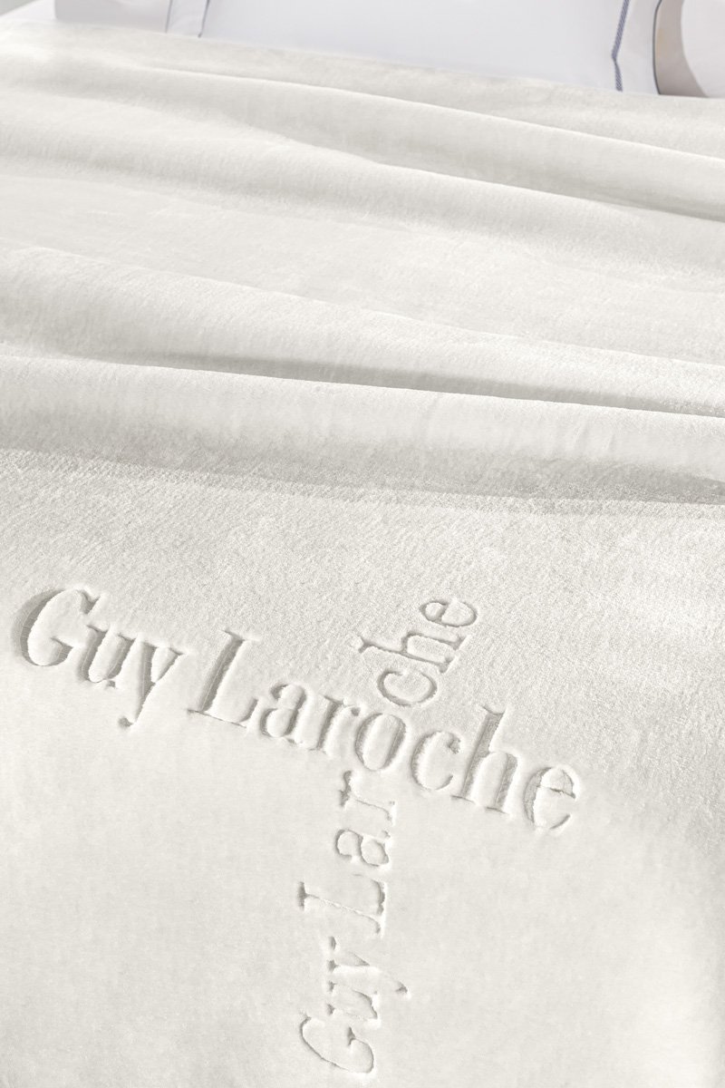 Κουβέρτα Βελουτέ Υπέρδιπλη 220×240 Guy Laroche Logo Ivory