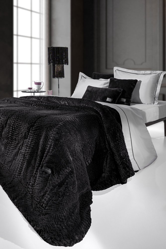 Γούνινη Κουβέρτα UltraSoft 220×240 Μαξιλαροθήκη 48×48+3 Guy Laroche Crusty Black