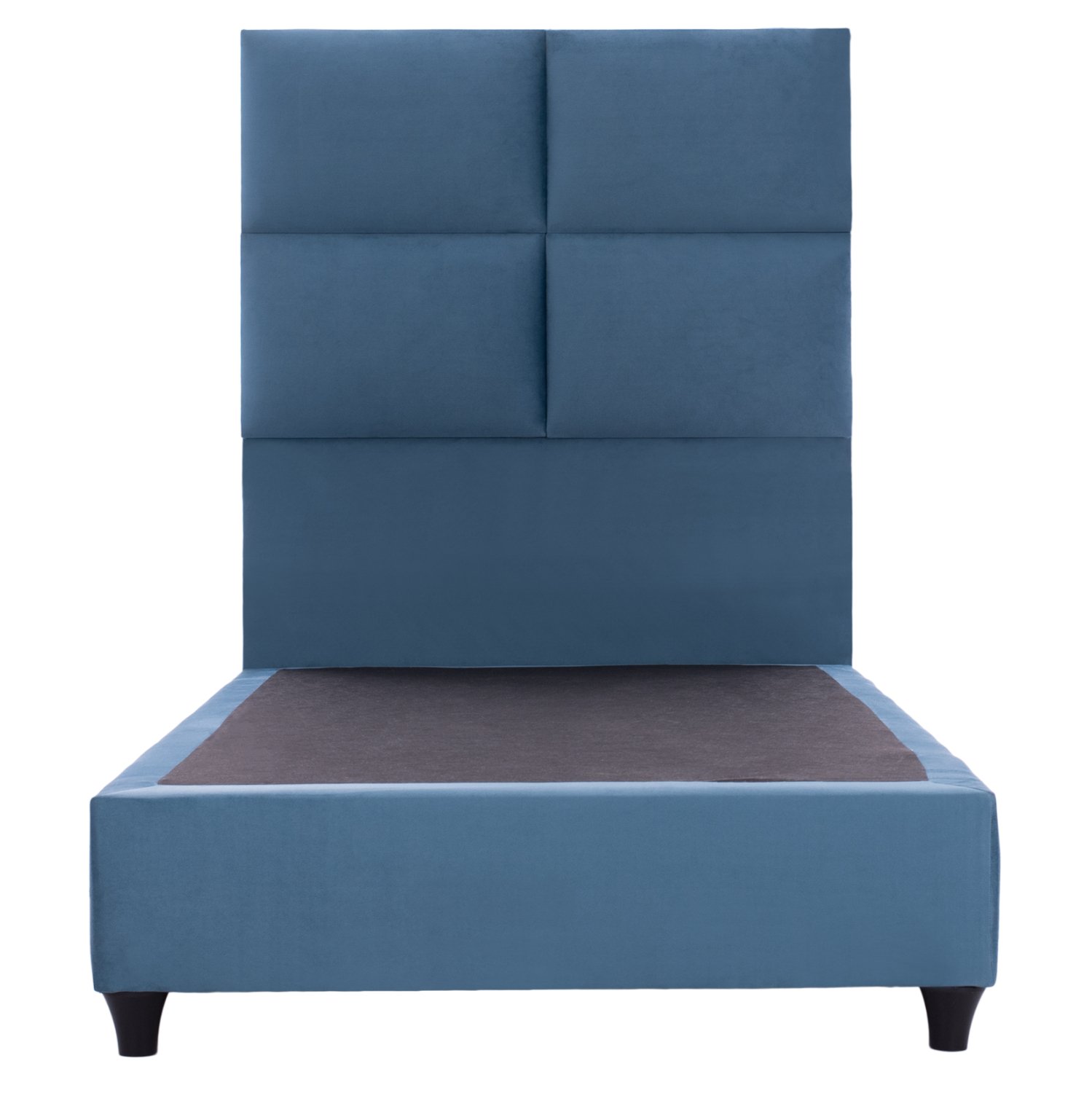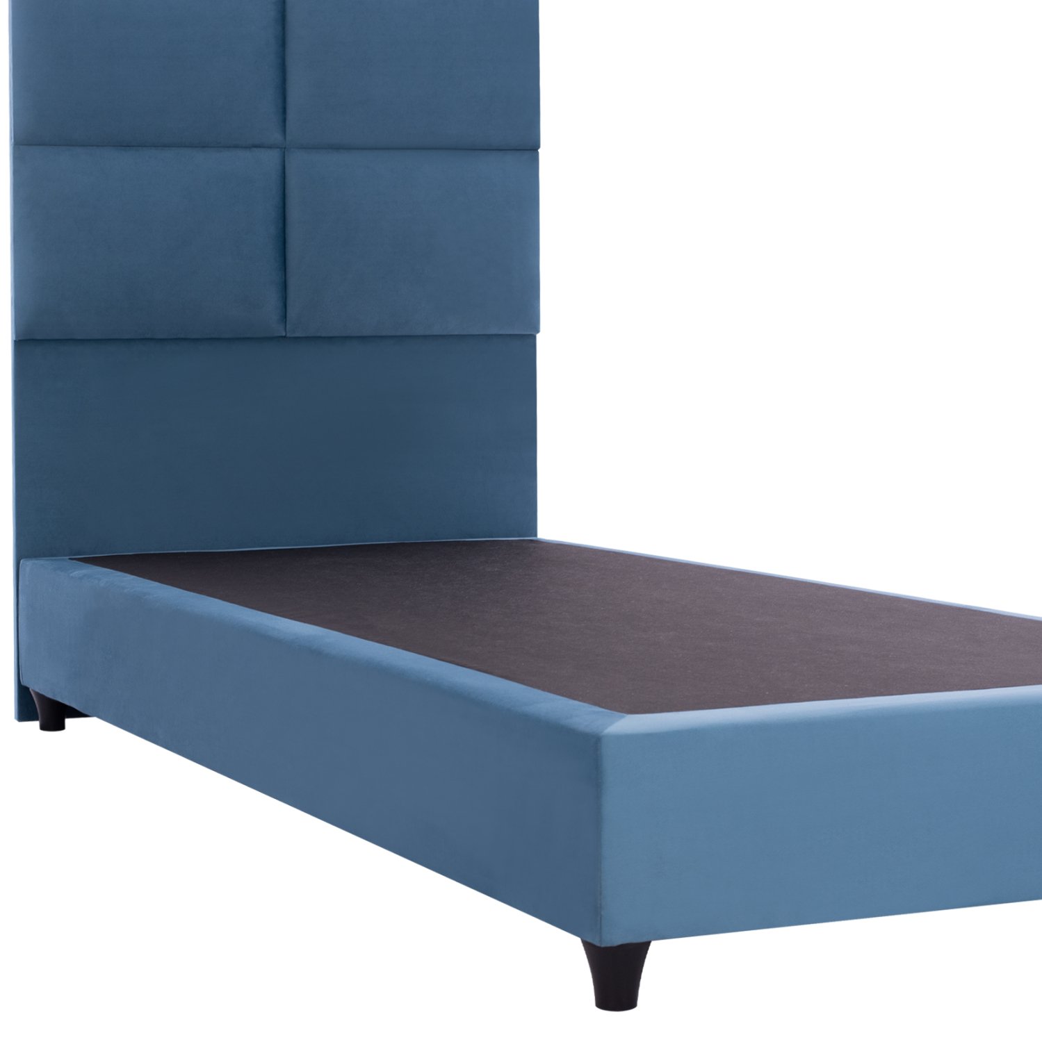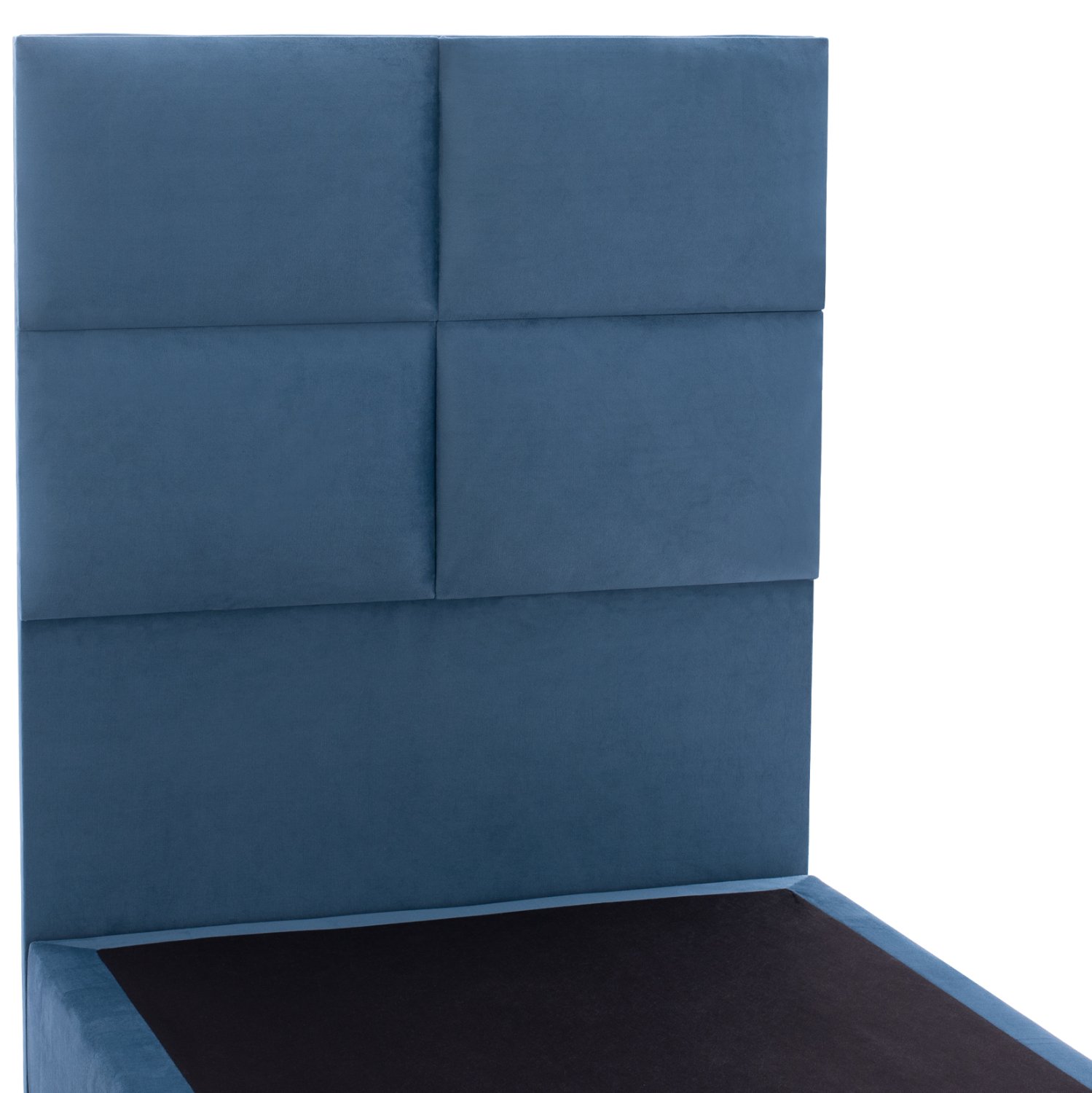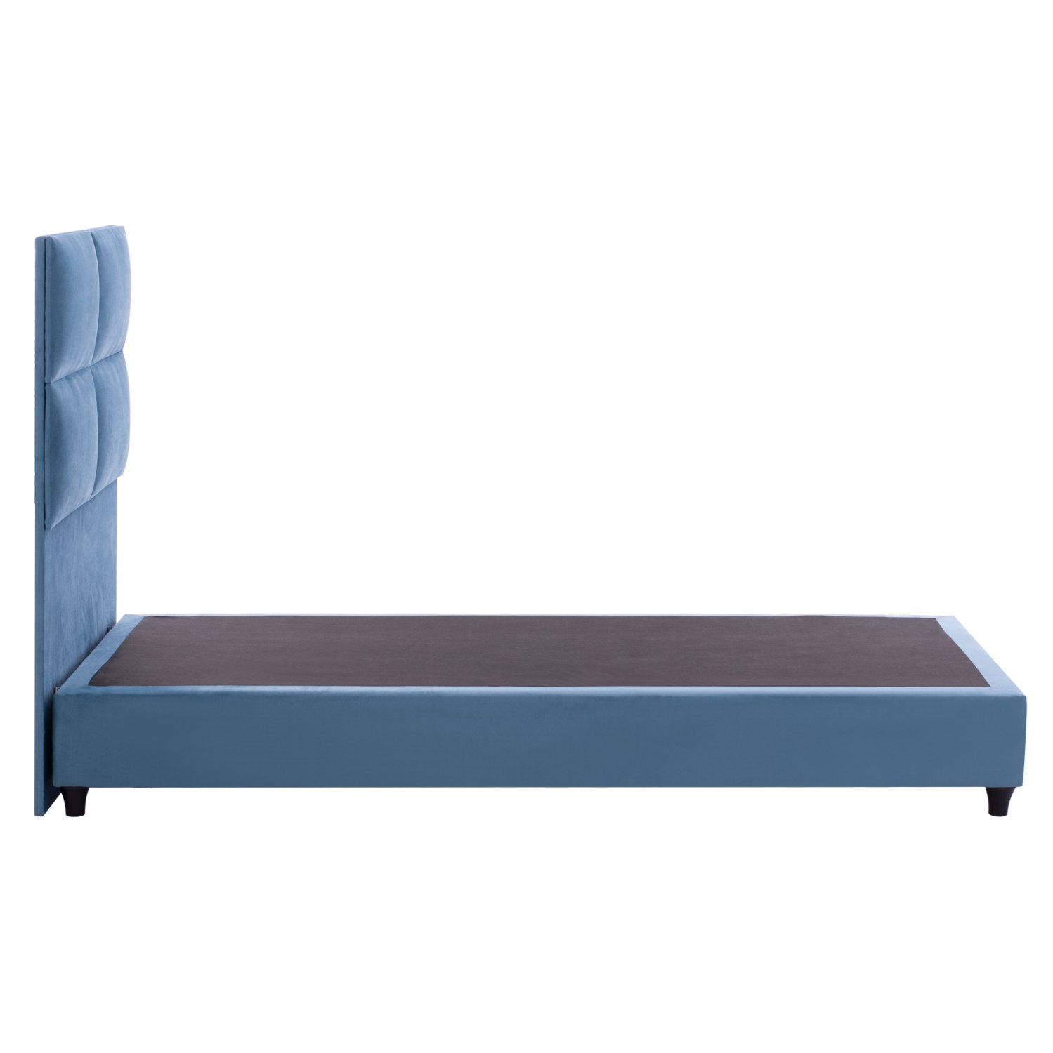 Το κρεβάτι MILO έχει ψηλό κεφαλάρι, επενδυμένο με καπιτονέ τεχνοτροπία σε μεγάλα ορθογώνια, ενώ και όλη η επένδυση του κρεβατιού είναι από βελούδινο ύφασμα. Το ΜΠΛΕ χρώμα σε όλο το κρεβάτι είναι εντυπωσιακό και μπορεί να συνδυαστεί με πληθώρα διακοσμητικών μοτίβων. Όμως, το κύριο χαρακτηριστικό αυτού του κρεβατιού είναι ότι δεν ακολουθεί την κλασική κατασκευή με τις τάβλες του σομιέ για την στήριξη του στρώματος, αλλά αντίθετα αποτελείται από μια συνεχόμενη επιφάνεια (μοριοσανίδα) πάνω στην οποία τοποθετείται το στρώμα! Σε διαστάσεις μονού στρώματος 90×200 εκ.
