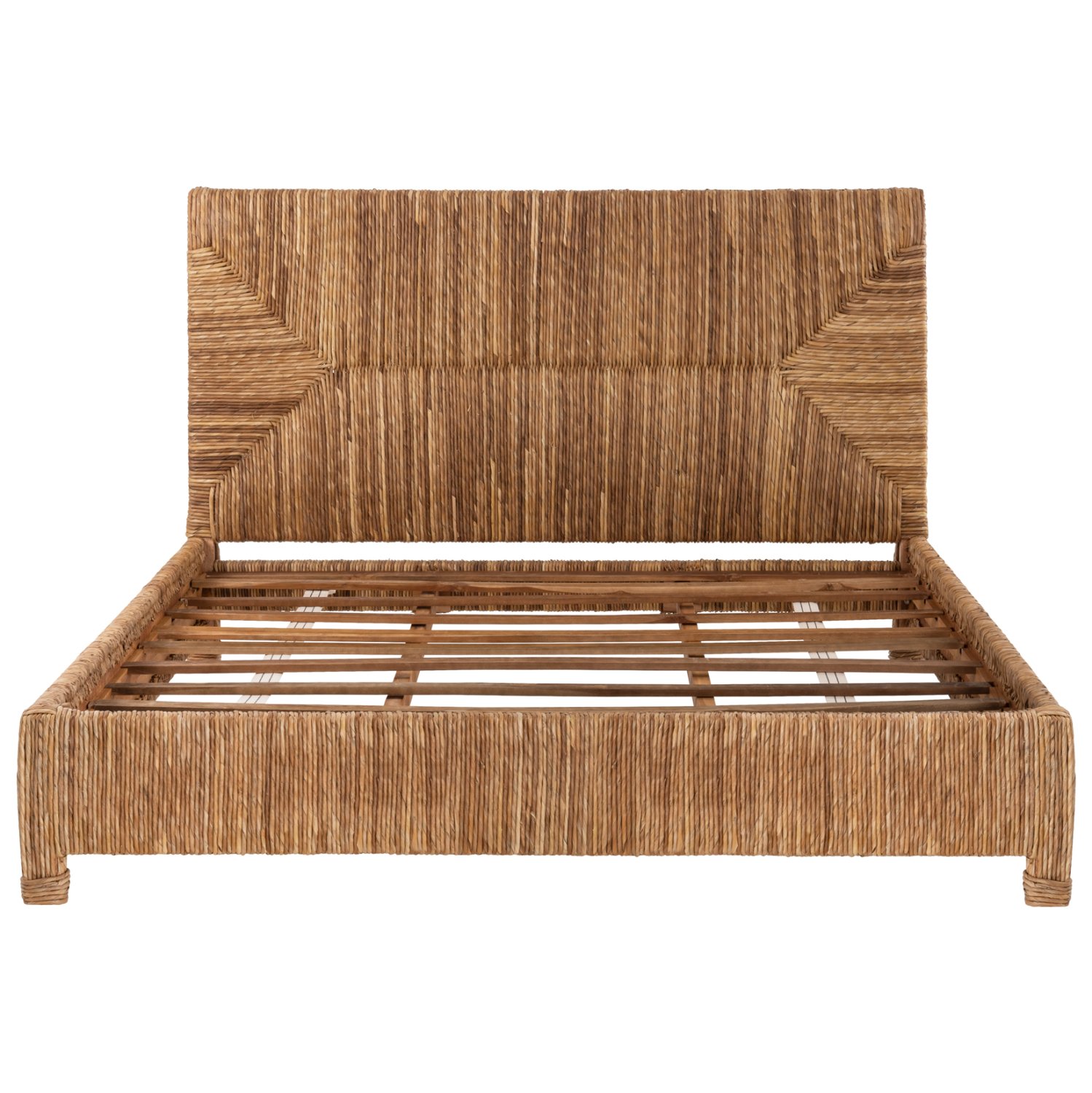 Στο «THAW» η παραδοσιακή εκδοχή του ξύλινου κρεβατιού ενισχύεται ακόμα περισσότερο με την ψάθινη επένδυση από φύλλα του δέντρου μπανάνας σε ΦΥΣΙΚΟ χρώμα, η οποία είναι και το κυρίαρχο στοιχείο αυτού του κρεβατιού. Ειδικά, το ψηλό κεφαλάρι τραβάει τα βλέμματα σαν μαγνήτης!