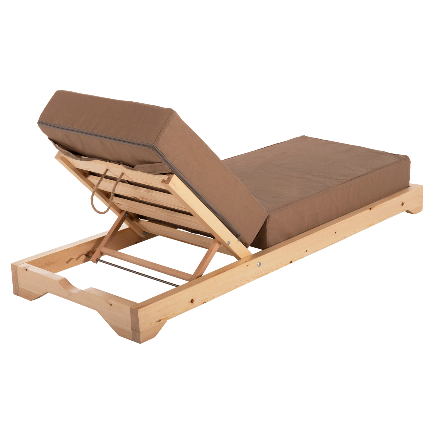 Η επαγγελματική ξαπλώστρα παραλίας IKARIA της εταιρίας μας σε ΦΥΣΙΚΟ χρώμα είναι μια μοντέρνα και πολυτελής πρόταση για την παραλία. Δεν είναι ψηλή αλλά στηρίζεται σε 4 πολύ χαμηλά πόδια στις 4 γωνίες. Η ξύλινη κατασκευή της την κάνει απίστευτα ανθεκτική και στιβαρή και το ΜΟΚΑ textilene πανί που καλύπτει το παχύ στρώμα ταιριάζει όμορφα με τον σκελετό. Η σκαλιέρα έχει 5 θέσεις ανάκλισης που επιτυγχάνεται με ένα σχοινένιο χερούλι που βρίσκεται στο πίσω μέρος της πλάτης, και σε συνδυασμό με τις μεγάλες διαστάσεις της, προσφέρει όλα αυτά που θέλετε από μια πολυτελή ξαπλώστρα παραλίας.