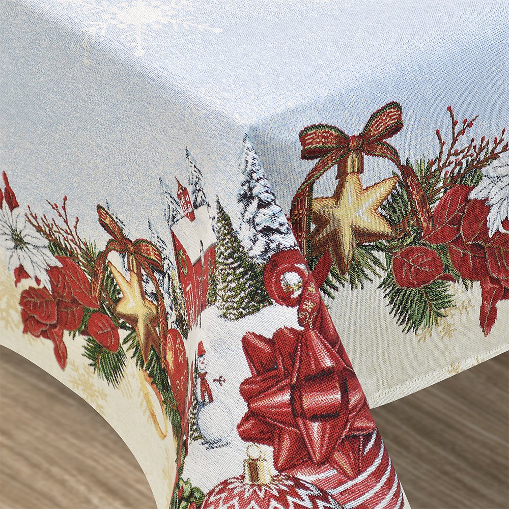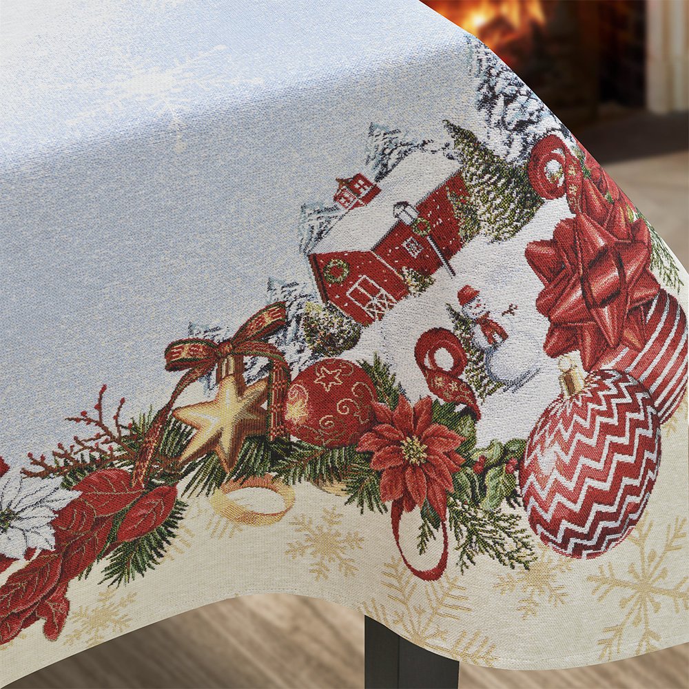 Χριστουγεννιάτικο τραπεζοκαρέ Lucerna από την εταιρεία Lino Home. Το τραπεζοκαρέ Lucerna είναι διακοσμημένο με σχέδια εμπνευσμένα από την καρδιά των χριστουγέννων περιμετρικά, σε λευκό-εκρού φόντο και γυαλιστερές λεπτομέρειες. Είναι κατασκευασμένο από ύφασμα στόφα Ισπανίας, σύνθεσης κατά βάση βαμβακερή για να στέκεται όμορφα και να αναδεικνύονται τα σχέδια και τα χρώματά του. Είναι κατάλληλο για μικρού μεγέθους τετράγωνα τραπέζια χάρη στις διαστάσεις του. Στολίστε μοναδικά το χώρο σας με χριστουγεννιάτικα τραπεζομάντηλα από την εταιρεία Lino Home! Απαγορεύεται το πλύσιμο και το σιδέρωμα με ατμό. Απαγορεύεται η χρήση χλωρίου ή λευκαντικού.