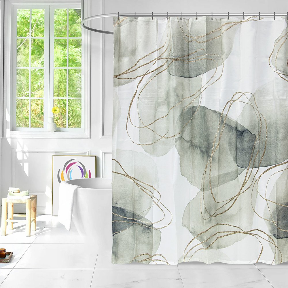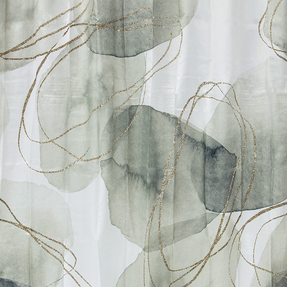 Περιλαμβάνει μία κουρτίνα μπάνιου με δώδεκα πλαστικούς κρίκους