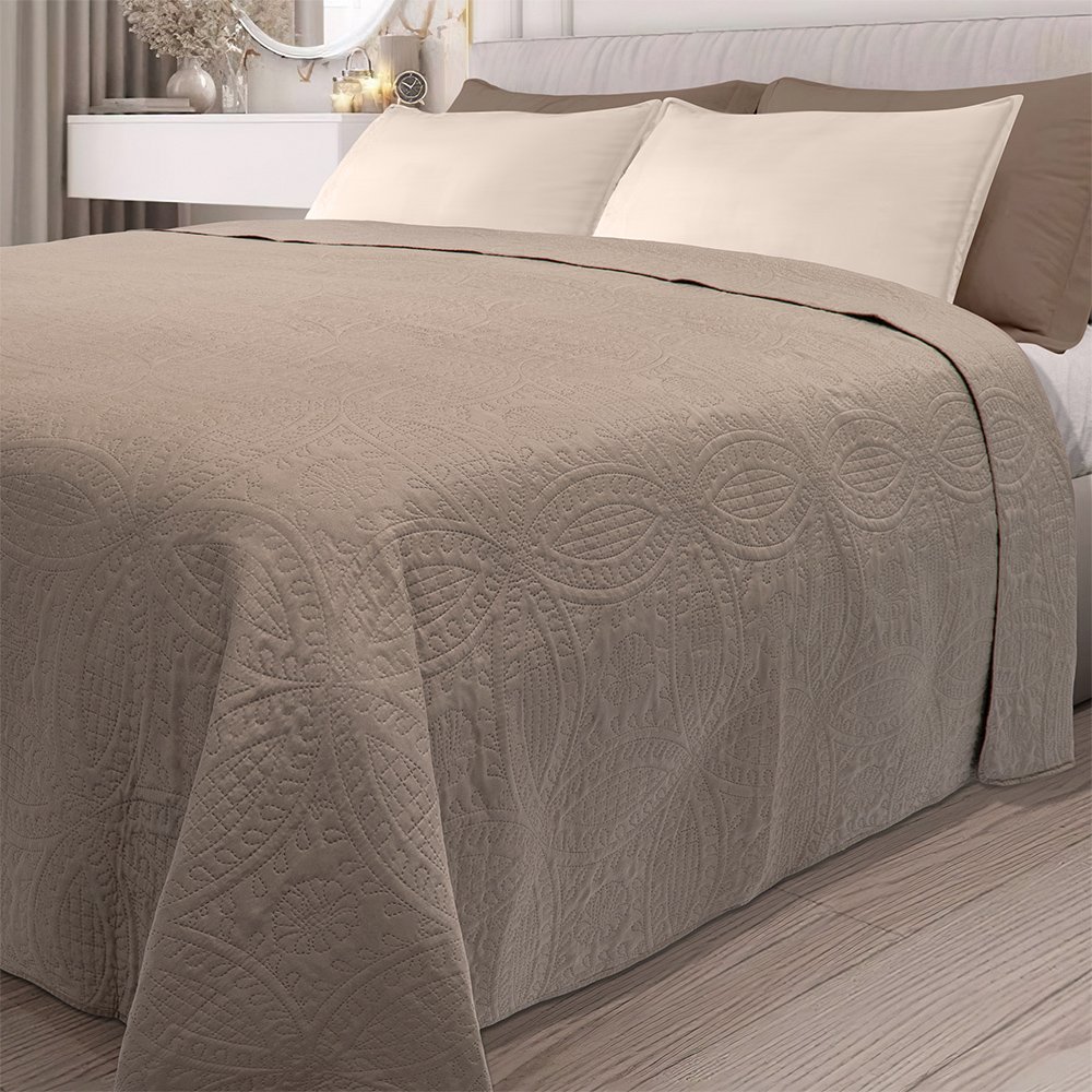 Κουβερλί Ligero Mocca της εταιρίας Lino Home! Αναβαθμίστε την διακόσμηση του υπνοδωματίου σας με αυτό το κομψό και μοντέρνο κουβερλί, κατασκευασμένο με τεχνολογία laser cut για μοναδικό ανάγλυφο σχέδιο που συνδυάζει διακριτική πολυτέλεια και άνεση.